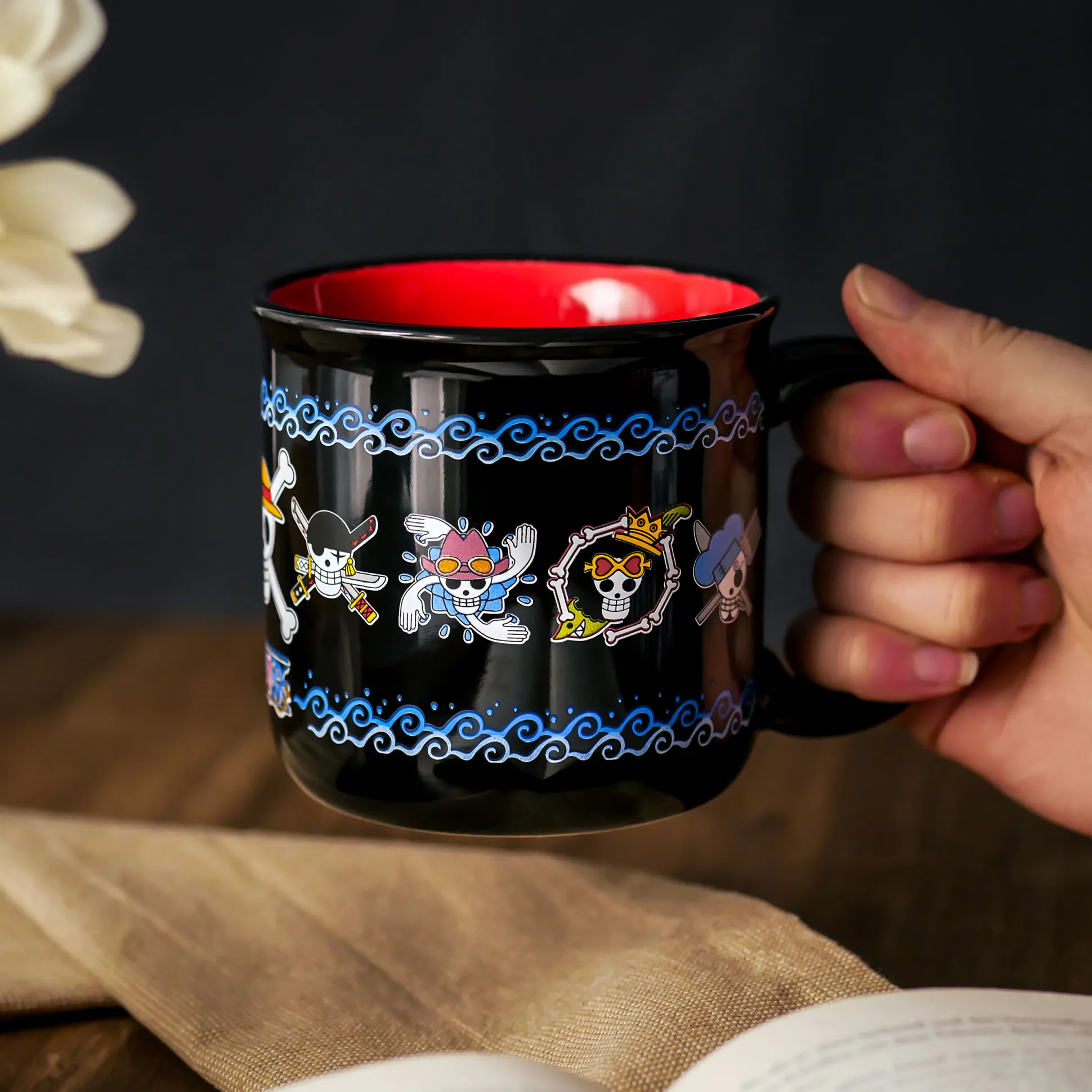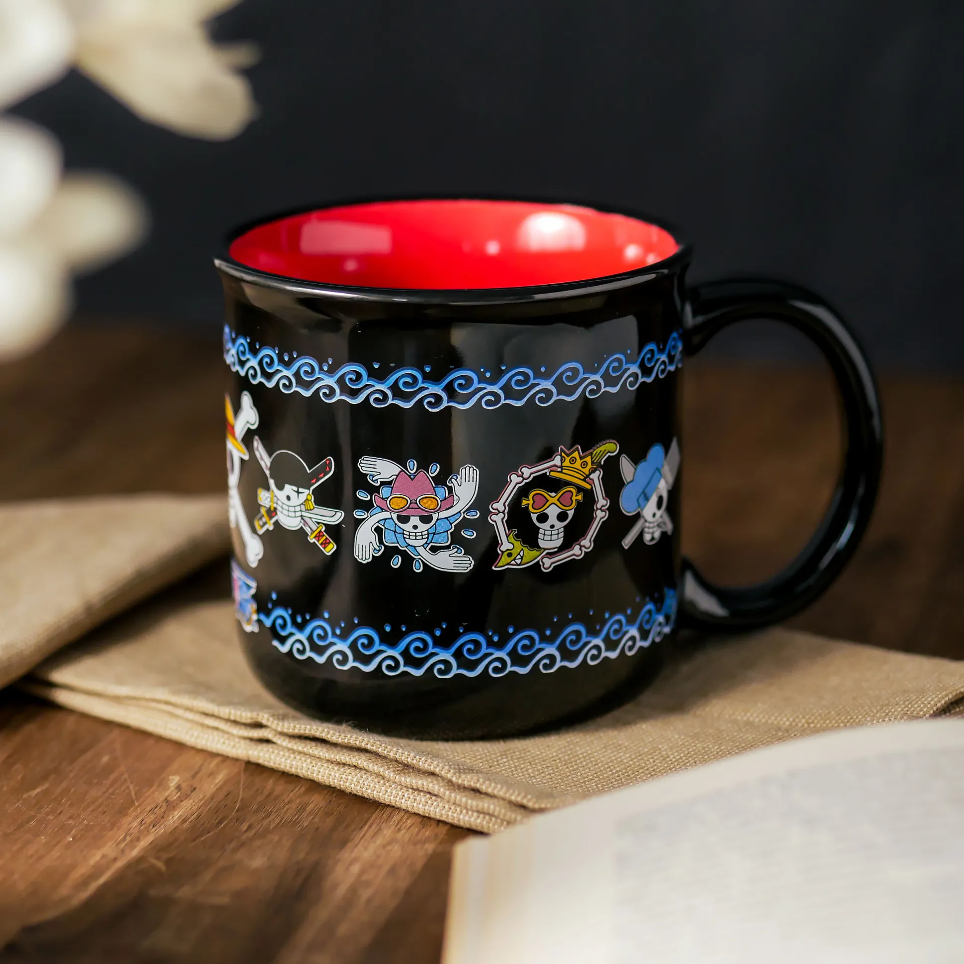 Zet koers naar je dag met de officieel gelicentieerde One Piece Skull mok. Zwart aan de buitenkant, rood van binnen en goed voor 400 ml koffie, thee of piratenwaardige warme choco.