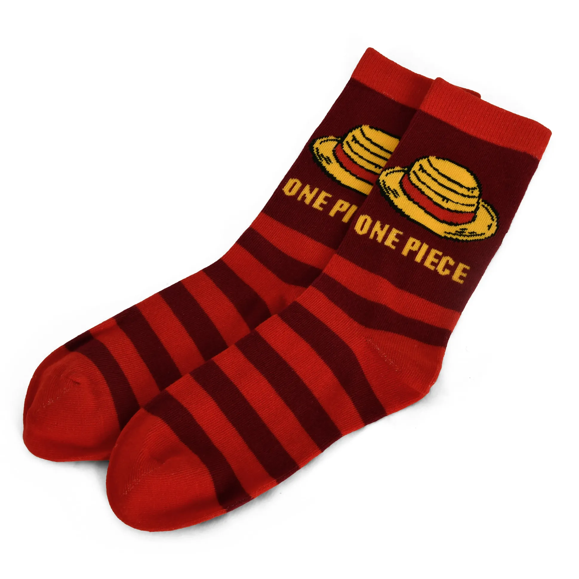 Laat zien dat je bij de Straw Hat Pirates hoort – op je voeten! Deze officieel gelicentieerde One Piece-sokken komen als 1 paar in felrood en dragen Luffy’s iconische strohoed. De stevige, goed aansluitende boorden blijven zitten, of je nou over het dek rent of gewoon chillt. Het perfecte cadeau voor One Piece-fans – of wat Grand Line-flair voor je eigen outfit.