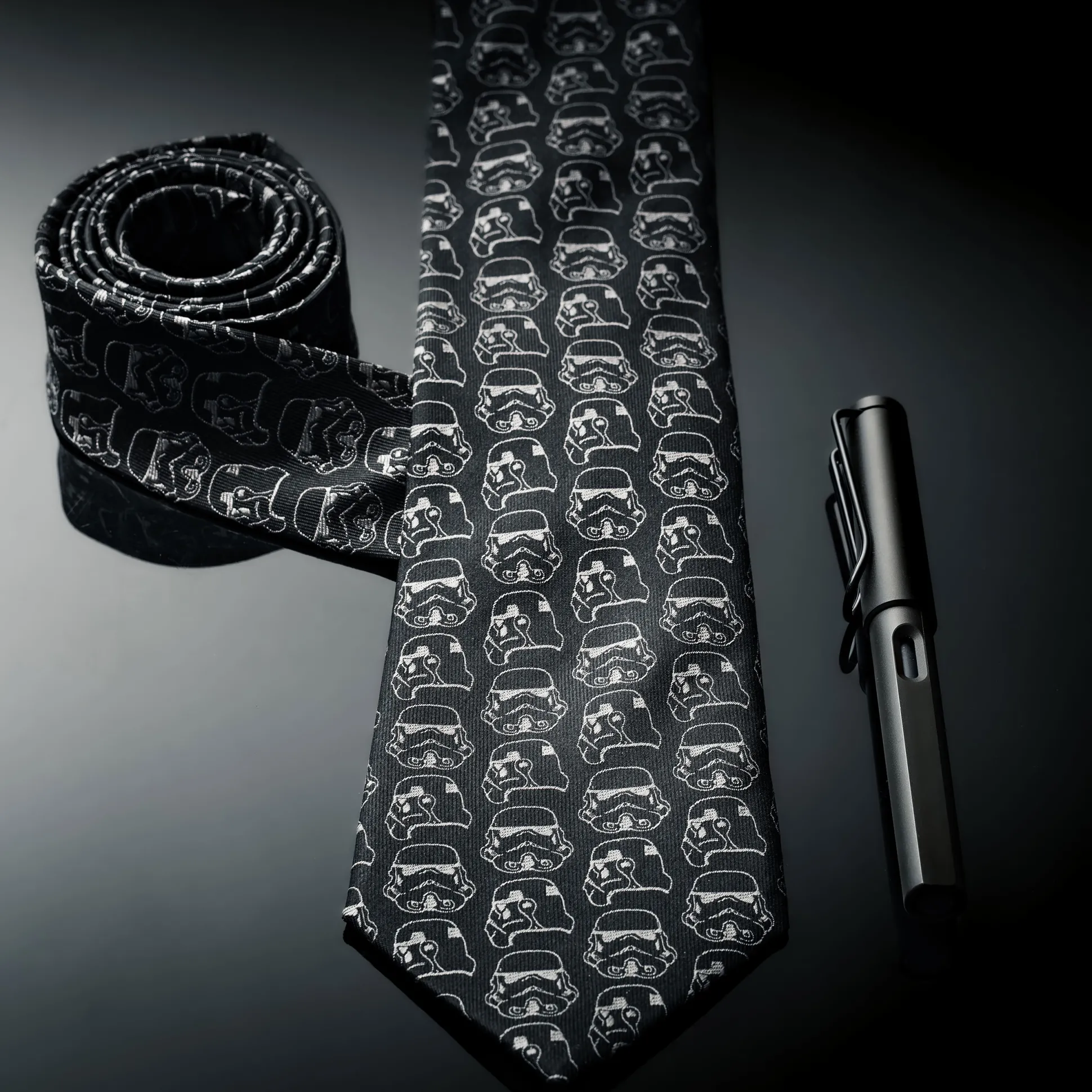 Voor iedereen die op kantoor liever voor de donkere kant van mode kiest: de Original Stormtrooper – Trooper Pattern stropdas brengt galactische stijl in je dagelijkse leven.