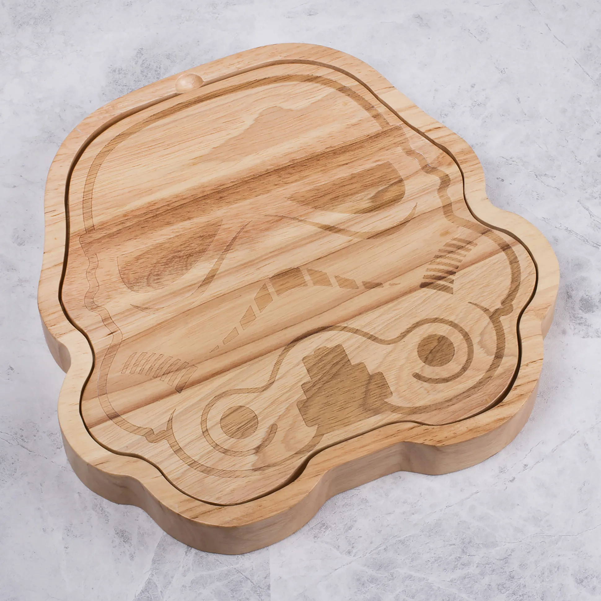 - Kaasplank en messenhandvatten in Stormtrooper design