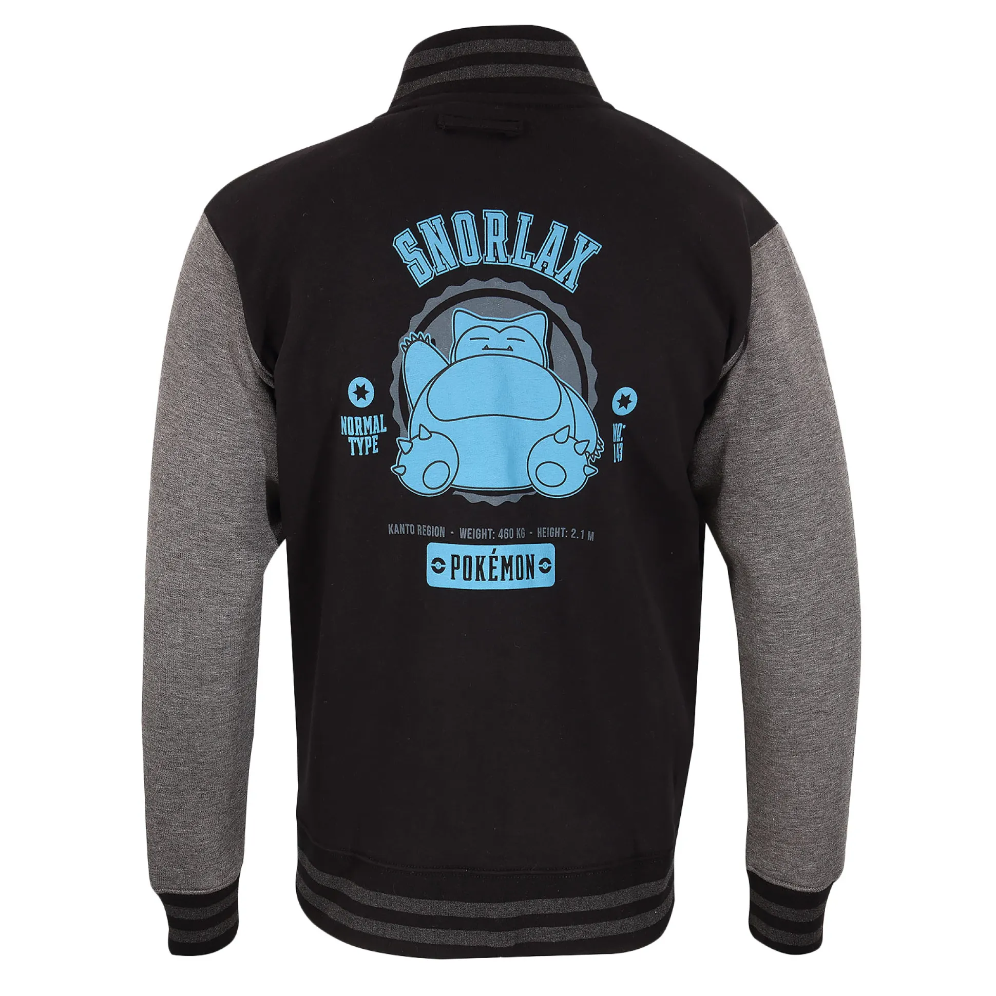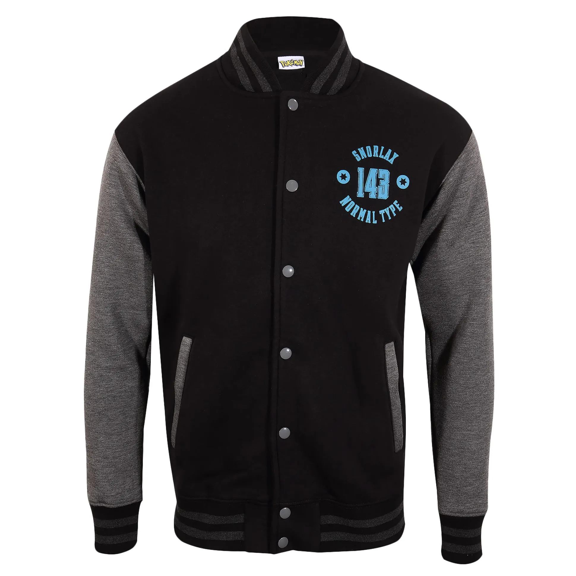 Slaap als een pro, zie eruit als een baas. Dit officieel gelicentieerde Nintendo Pokémon collegejack zet je Snorlax‑trots groot op je rug en houdt het voor subtiel met een klein Normal Type 143‑embleem. Zachte, geruwde binnenkant, stevige gestreepte ribboorden en twee voorzakken met drukknoopsluiting: zo comfy als een powernap en precies zo praktisch als je nodig hebt. Voor campus, con of bank — probeer alleen niet in slaap te vallen midden in een high‑five.
