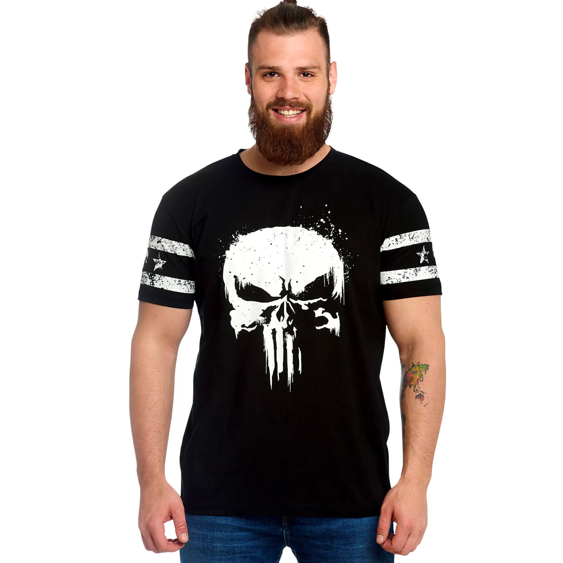 Tijd om je innerlijke antiheld te ontketenen, zonder meteen New York plat te gooien? Pak dan dit officieel gelicentieerde Marvel Punisher T-shirt! De iconische schedel siert de borst en de mouwprint verklapt: jij neemt recht in eigen hand. Zwart katoen, stoere prints aan de voorkant én op de mouw, relaxte rechte fit – klaar voor wraakacties richting koelkast. Voor fans, schurkenjagers en zij die het grijze gebied omarmen. Frank Castle zou je high-fiven.