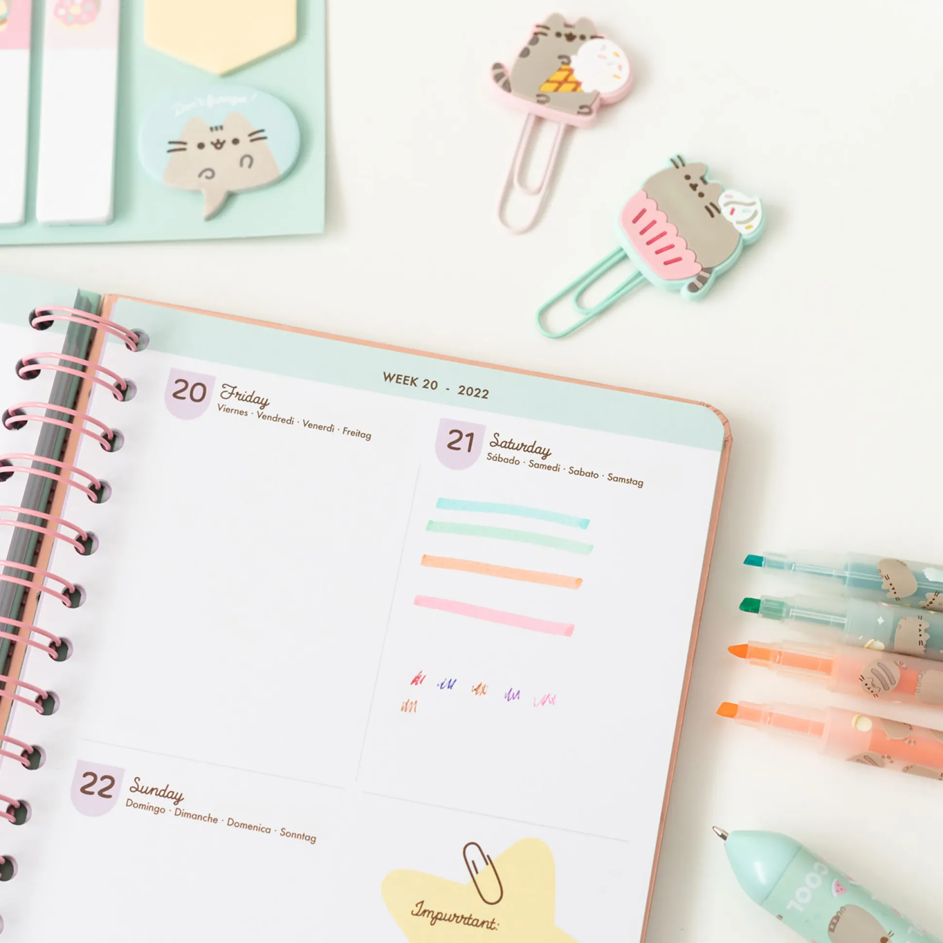 Perfect om te krabbelen, markeren en organiseren — van receptideeën en studienotities tot de volgende sushibestelling. Een zoet cadeau voor Pusheen‑fans (en foodies).
