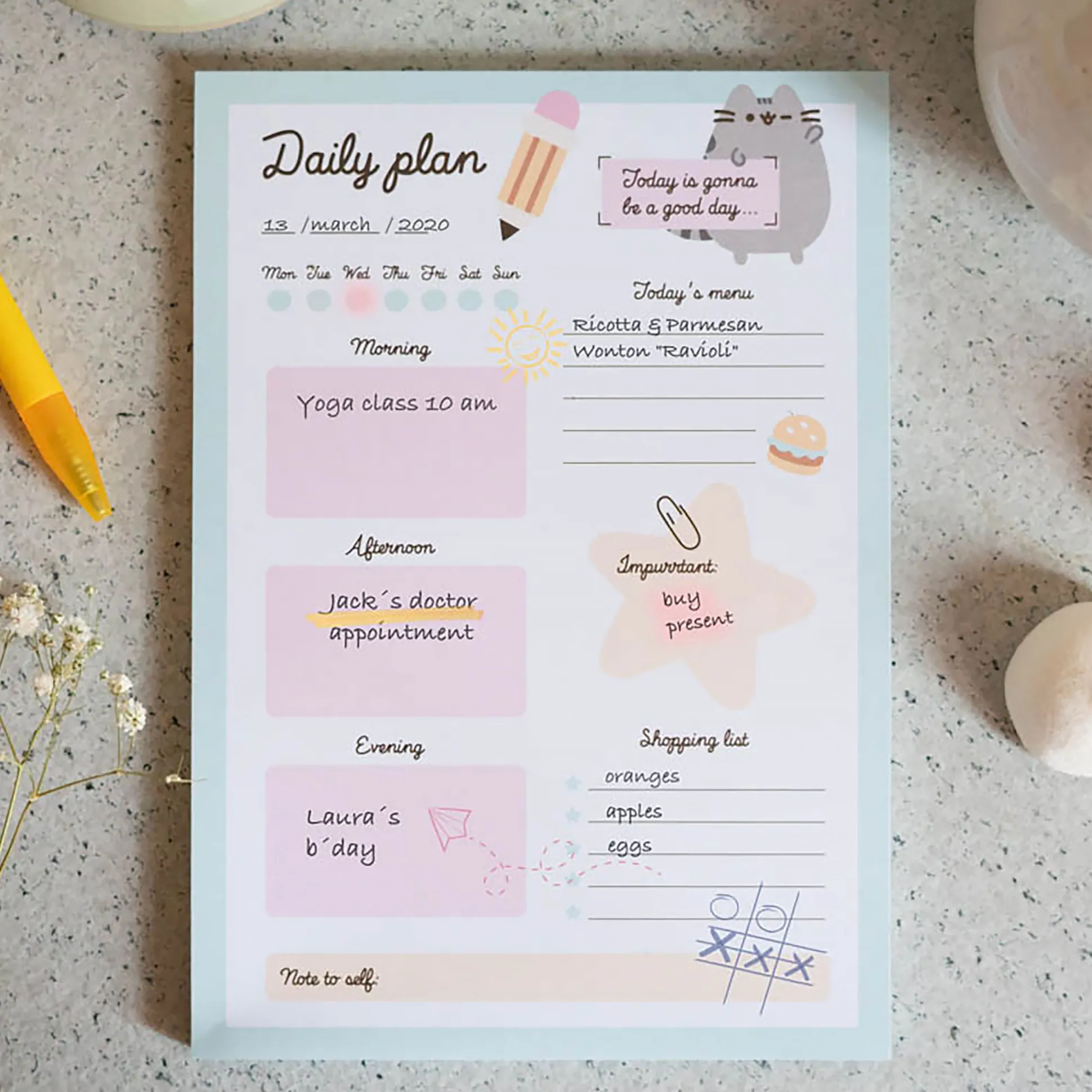 Maak van elke dag een Good Day—met Pusheen aan je zijde. Deze officieel gelicentieerde dagplanner in Pusheen the Cat-design brengt orde in to-do’s, afspraken en gedachten zonder het knuffelgehalte te verliezen. Op elke pagina vind je een to-dolijst plus ruimte voor notities—perfect voor ingevingen, boodschappenlijstjes of kleine snorhaar-krabbels.