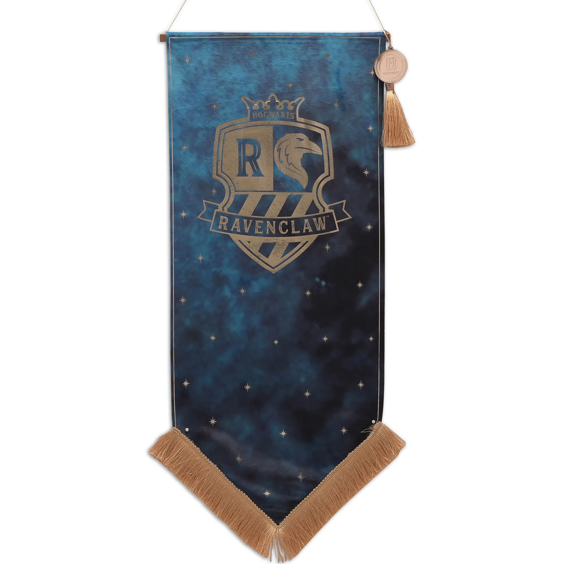 Ravenklauwen, opgelet: dit fluweelzachte banier brengt de Zweinstein-sfeer zo je huis in. Verhoogd Ravenklauw-wapen in het midden, een goudkleurig ophanglint en een houten stok met kwastjes en het Zweinstein-embleem. Officieel gelicentieerd Harry Potter banier, 24 x 58 cm – past overal, van studeerhoek tot boekenkast. Het perfecte cadeau voor slimme koppen, verzamelaars en tovenaars in opleiding. Aan de muur ermee en wat Huispunten scoren!