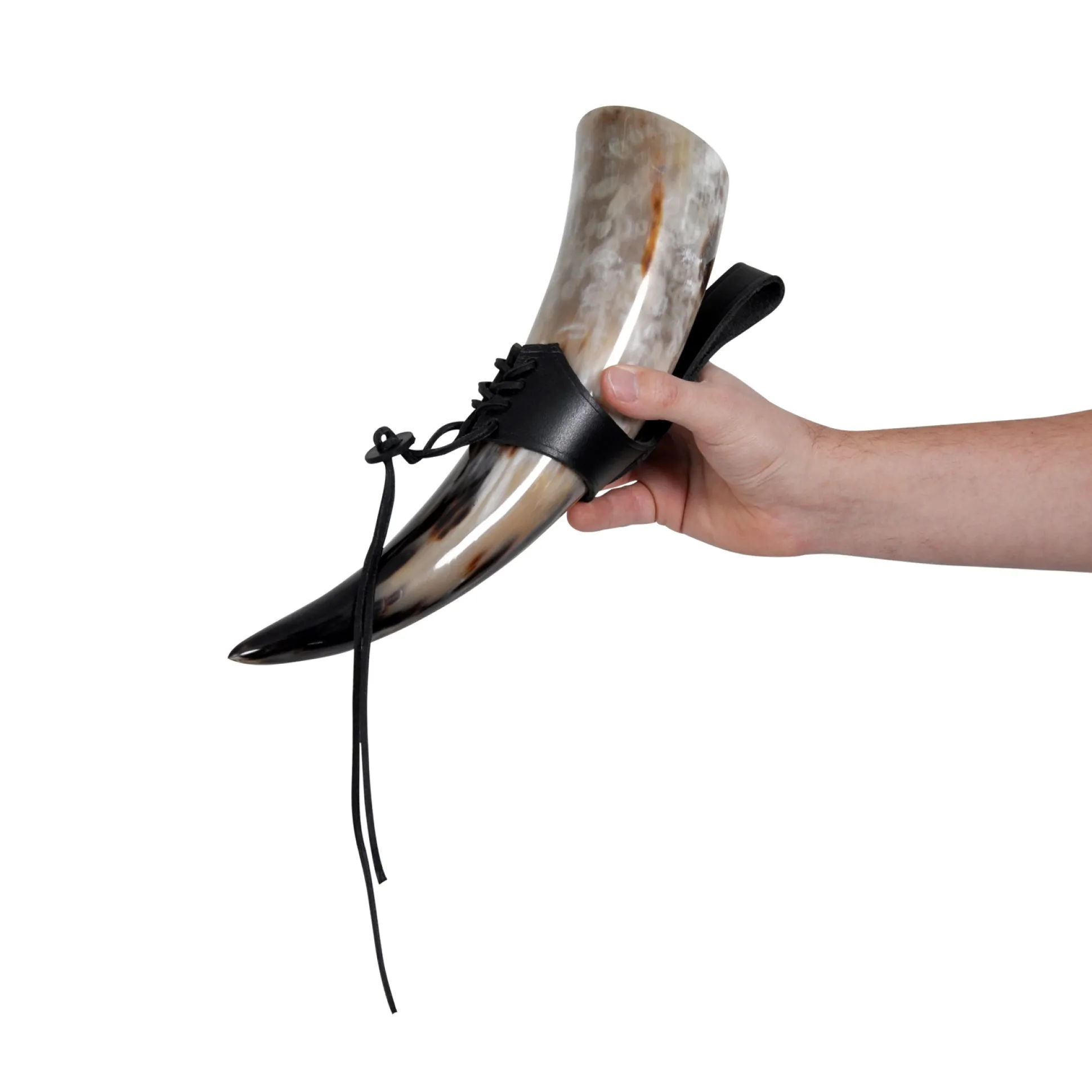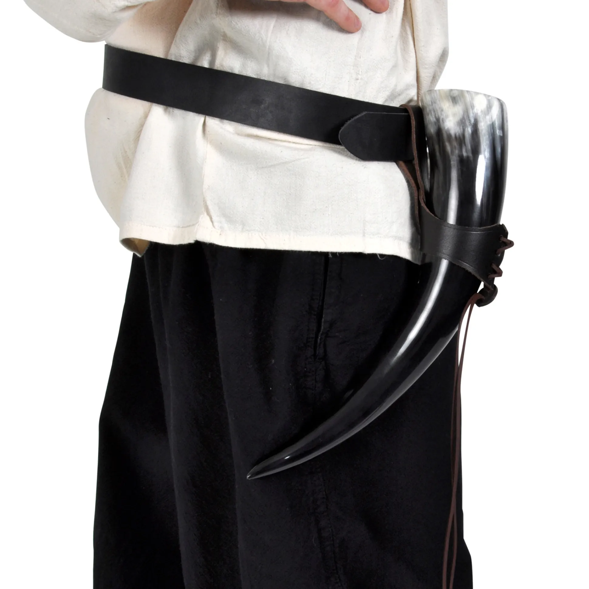 Wie kent het probleem niet…? Mede smaakt nog steeds het beste, stijlvol genoten uit een drinkhoorn, maar je wilt deze niet constant in je hand hoeven houden. Met de hoornhouder van echt leer kan de hoorn nu gemakkelijk bijvoorbeeld aan de riem worden gedragen.