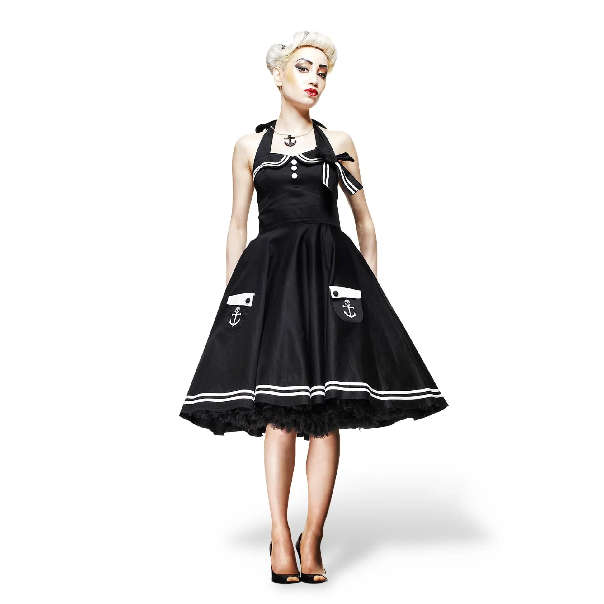 - Elegante rockabilly jurk in matrozenstijl met nekhouderbandjes om te binden