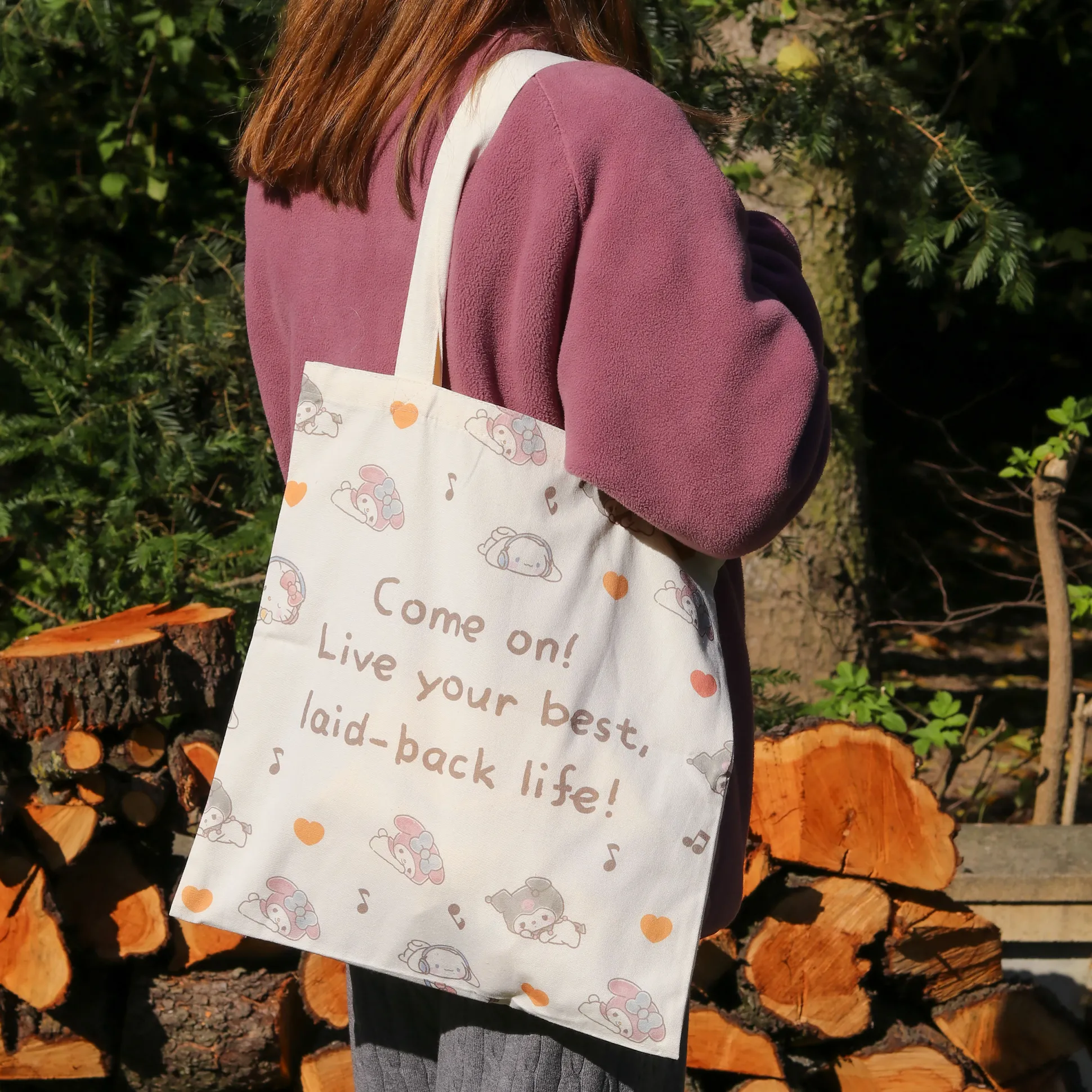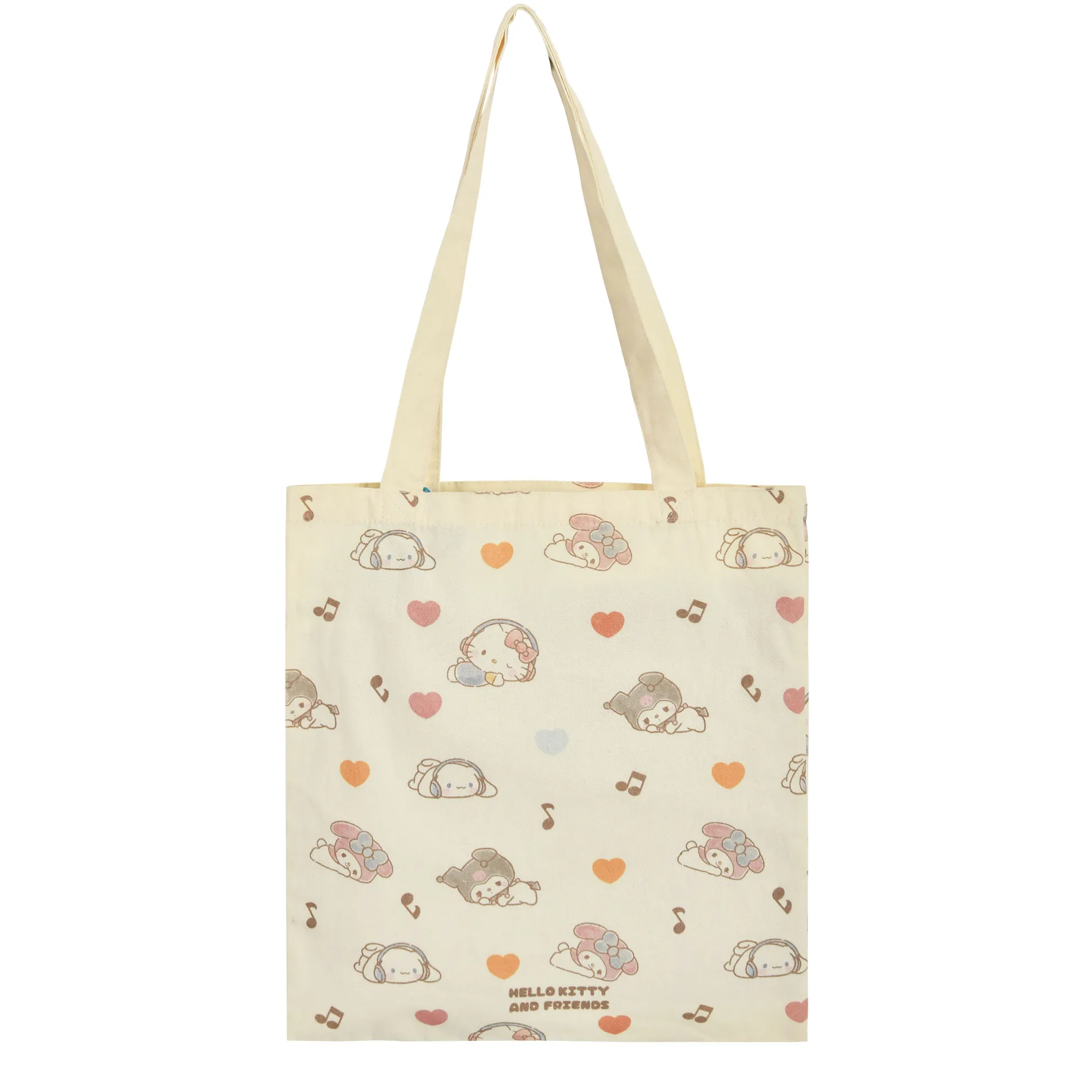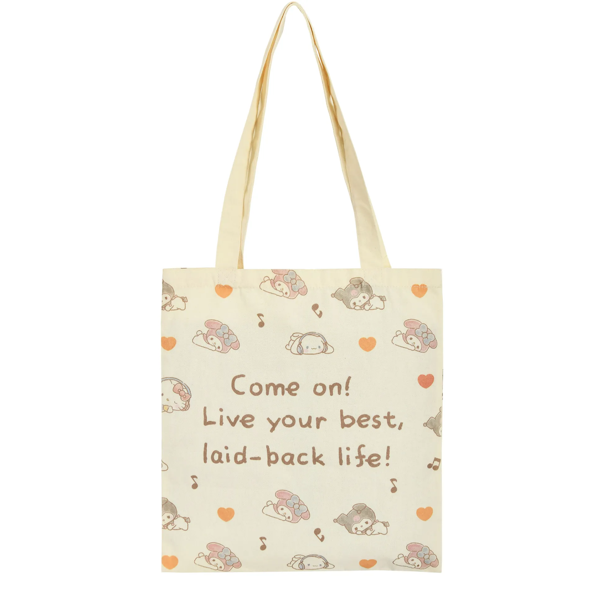 Hey jij daar! Klaar om wat kawaii vibes aan je leven toe te voegen? Grijp dan deze officieel gelicentieerde Sanrio Jutetas met Hello Kitty en Friends! Met een opvallend ontwerp waarop Kitty, Cinnamoroll, My Melody en Kuromi schitteren, ben jij het stralende middelpunt bij de supermarkt, in het park of gewoon tijdens het chillen. De tekst “Come on! Live your best, laid-back life!” herinnert je eraan om relaxt en stijlvol te blijven. Dankzij de lange hengsels draag je de tas moeiteloos over je schouder, terwijl je al je schatten (of snacks) kwijt kunt in het royale formaat van 38 x 40 cm. De beige kleur past overal bij, wat bewijst dat jij een geweldige smaak hebt – niet alleen in accessoires. Haal een stukje Sanrio-magie in huis en maak elke dag een beetje vrolijker!