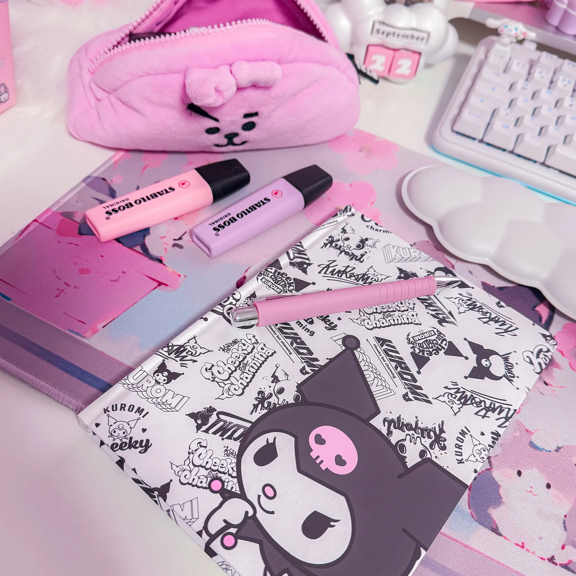 Hoi daar, kleine notitieboek-ninja! Met het officieel gelicentieerde Sanrio-notitieboek in Kuromi-design haal je niet alleen een stukje Hello Kitty and Friends-magie in huis, maar ook een trouwe metgezel voor je dagelijkse leven. Of het nu gaat om je geheime plannen, creatieve ideeën of gewoon je boodschappenlijstje – dit DIN A5-notitieboek met 80 gelinieerde pagina’s is klaar voor elke missie. Kuromi, de pittige vriendin van Hello Kitty, zal je met haar charme inspireren om alles op te schrijven wat belangrijk voor je is. Dus, waar wacht je nog op? Grijp het Kuromi-notitieboek en voeg een vleugje Sanrio-stijl toe aan je leven!