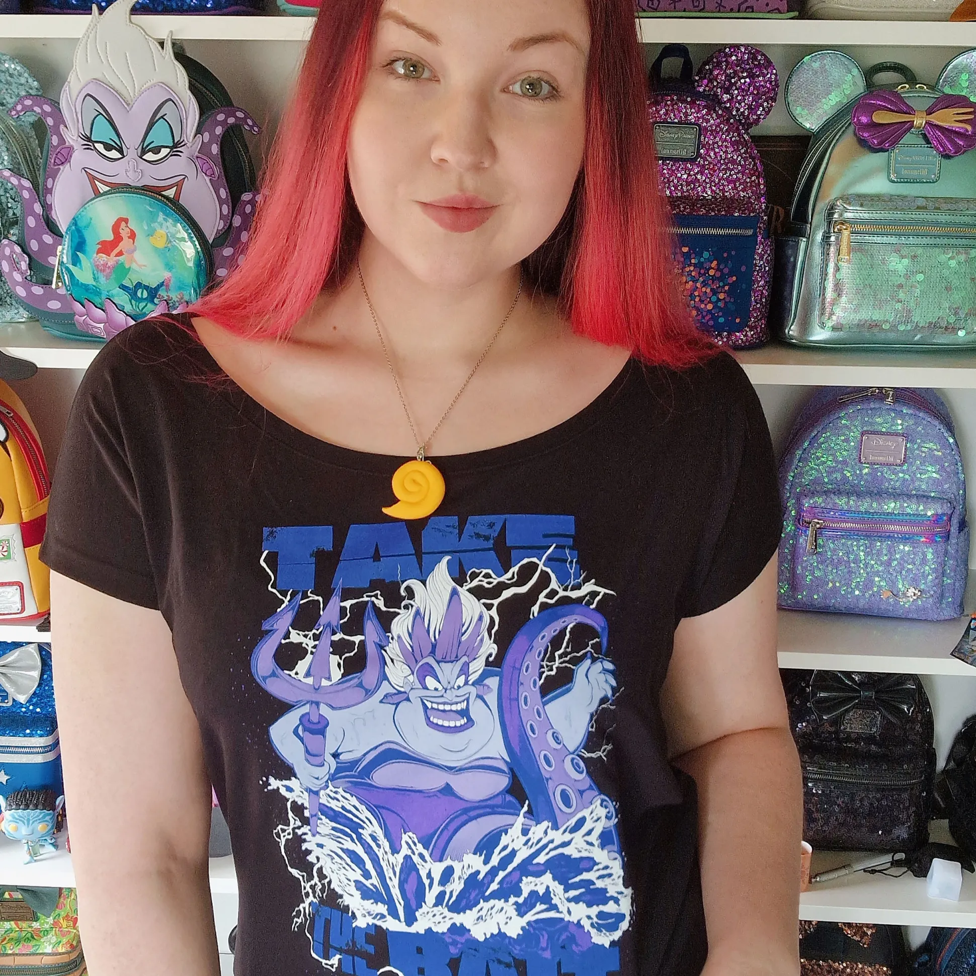 Laat de zeeheks het roer nemen: Dit officieel gelicentieerde dames-T-shirt voor Disney’s De Kleine Zeemeermin viert de koningin van de Disney Villains — Ursula — met een grote frontprint. Plus het citaat “Take the Bait” — zo subtiel als een tentakelzwaai en perfect om ze stijlvol te laten toehappen.