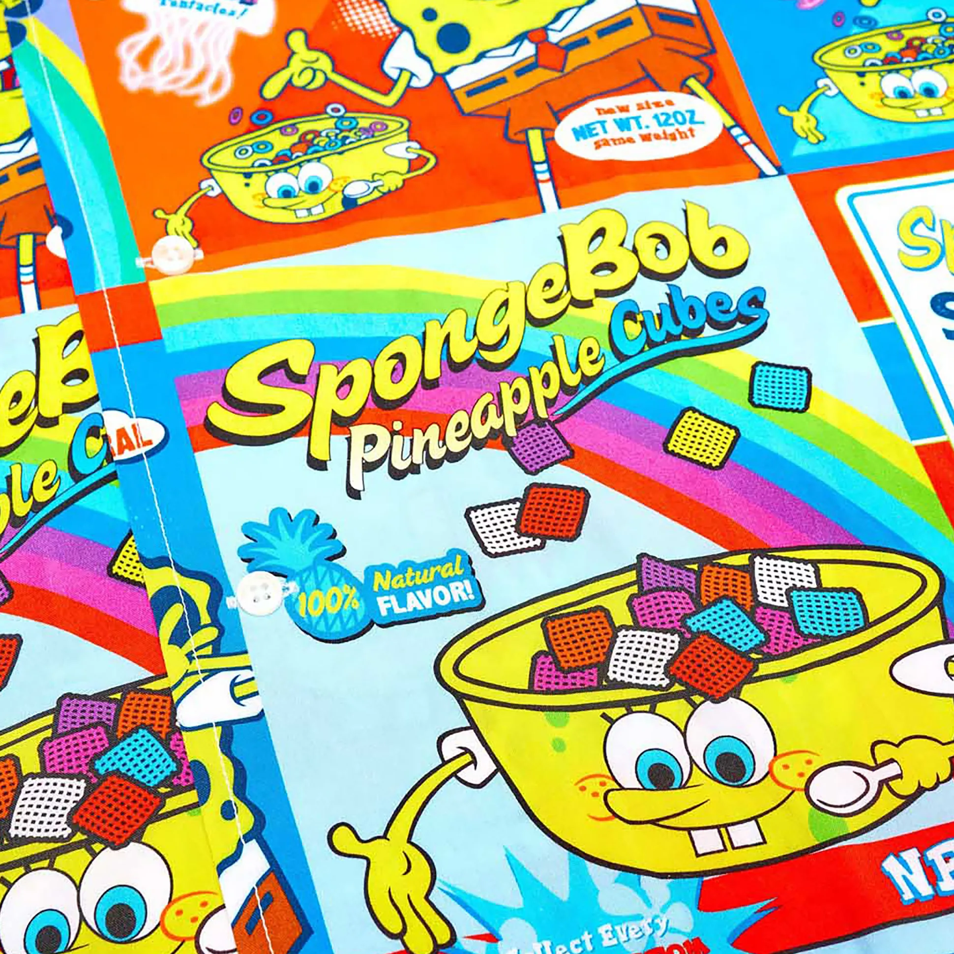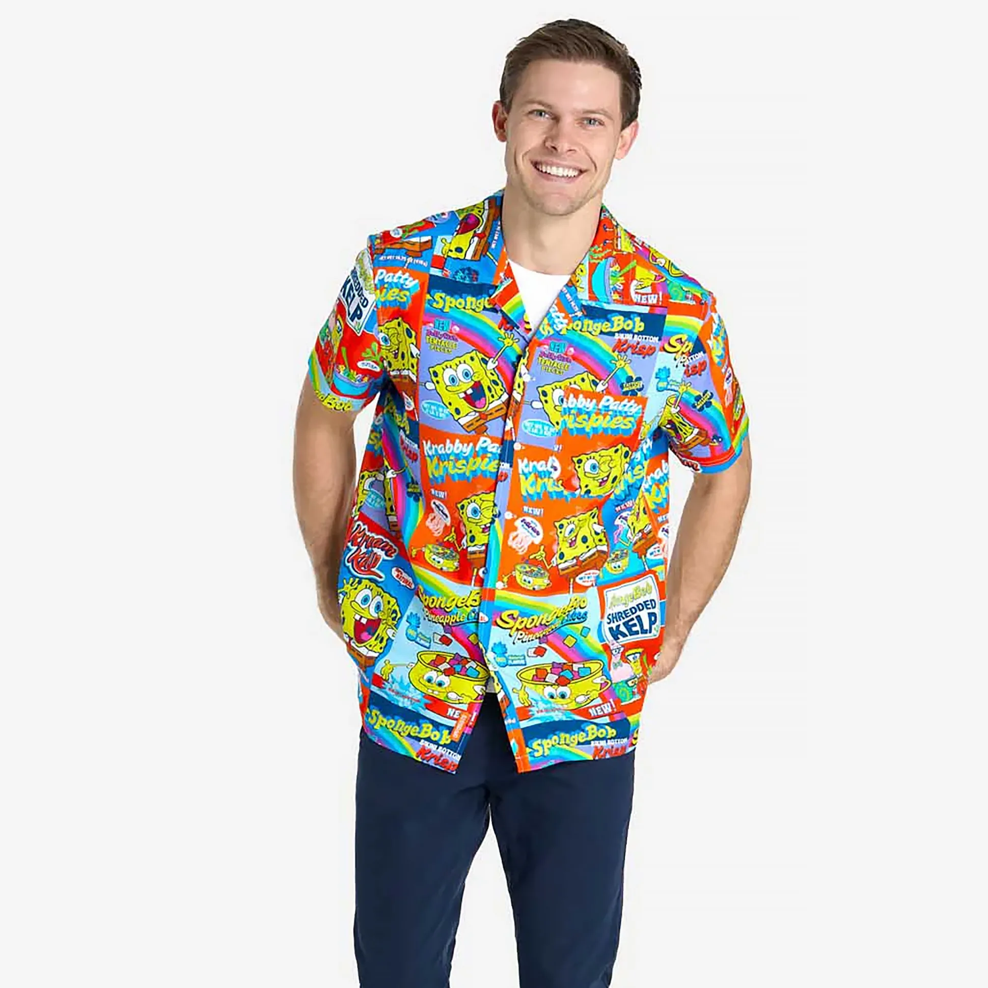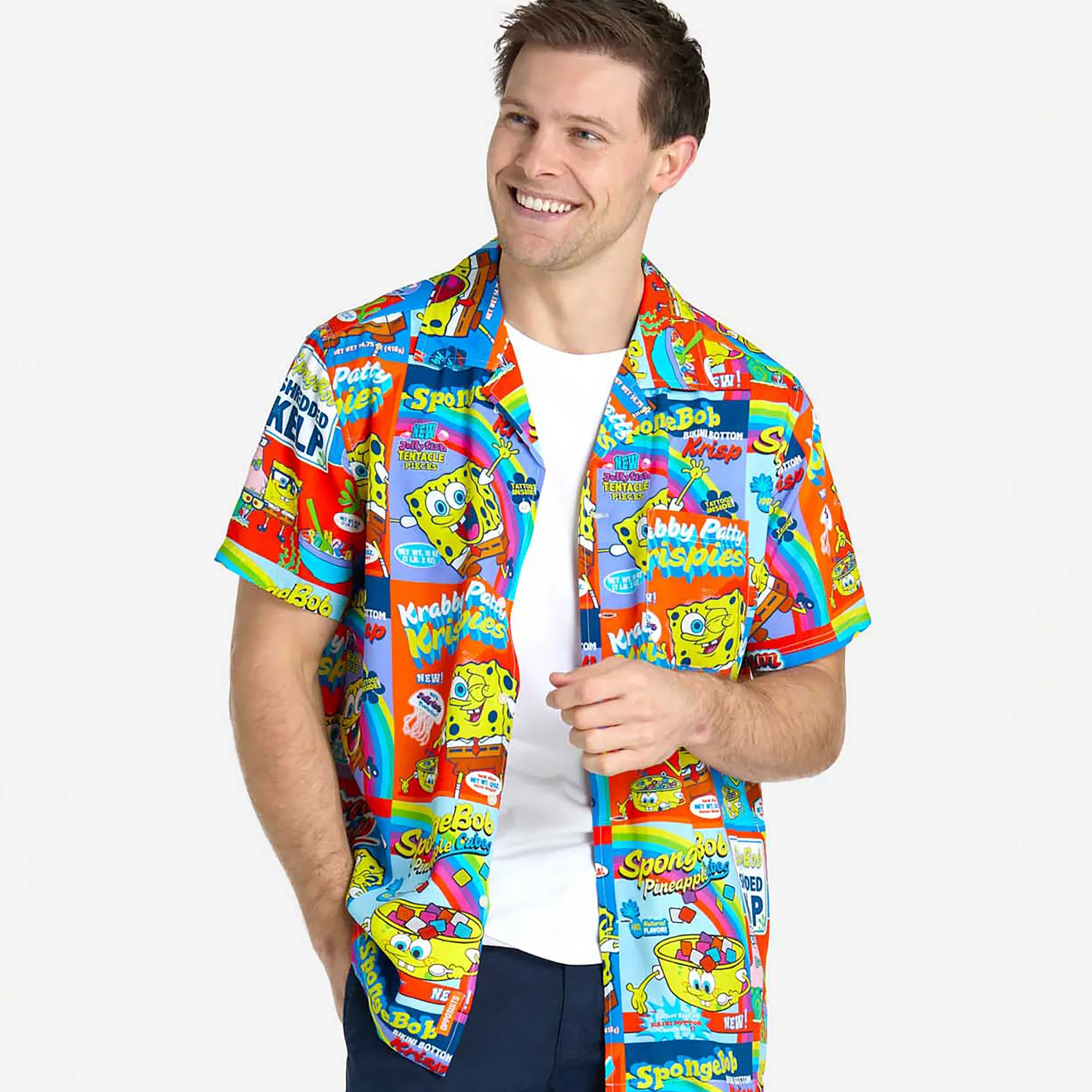 Het officieel gelicenseerde SpongeBob “Breakfast” herenoverhemd met korte mouwen serveert je een compleet Bikini Bottom-buffet op stof: all-over bedrukking met SpongeBob SquarePants-motieven, alsof je kledingkast net een ontbijtgranenmascotte heeft opgegeten.