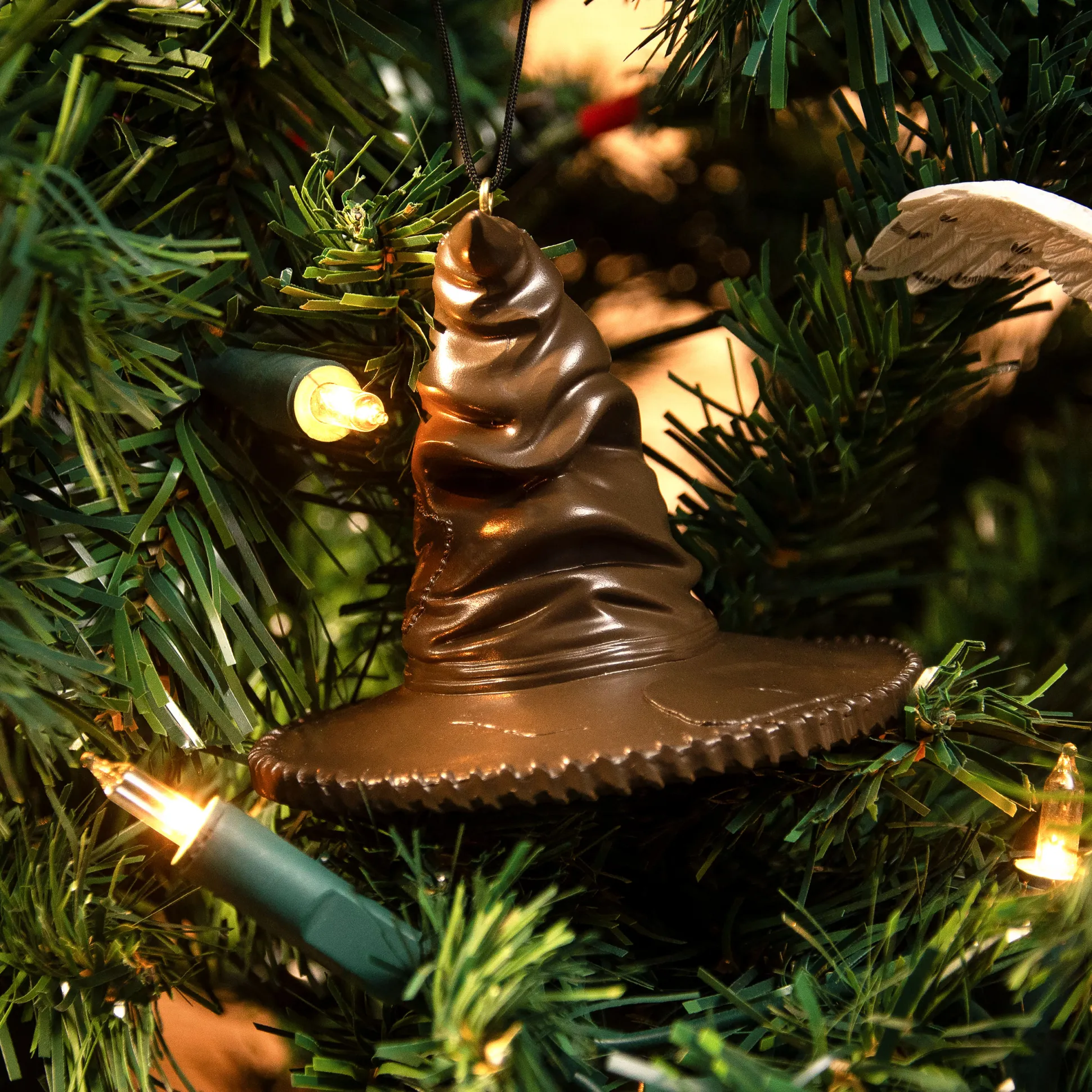Je kerstboom is uitgenodigd op Zweinstein. Dit ornament in de vorm van de Sorteerhoed verhuist van de Grote Zaal rechtstreeks naar je favoriete tak en brengt meteen tovenaarssfeer. Hij zal misschien niet de hele avond een lied inzetten, maar houdt zeker een oogje in het zeil op wie bij welk huis hoort – en op de koektrommel.