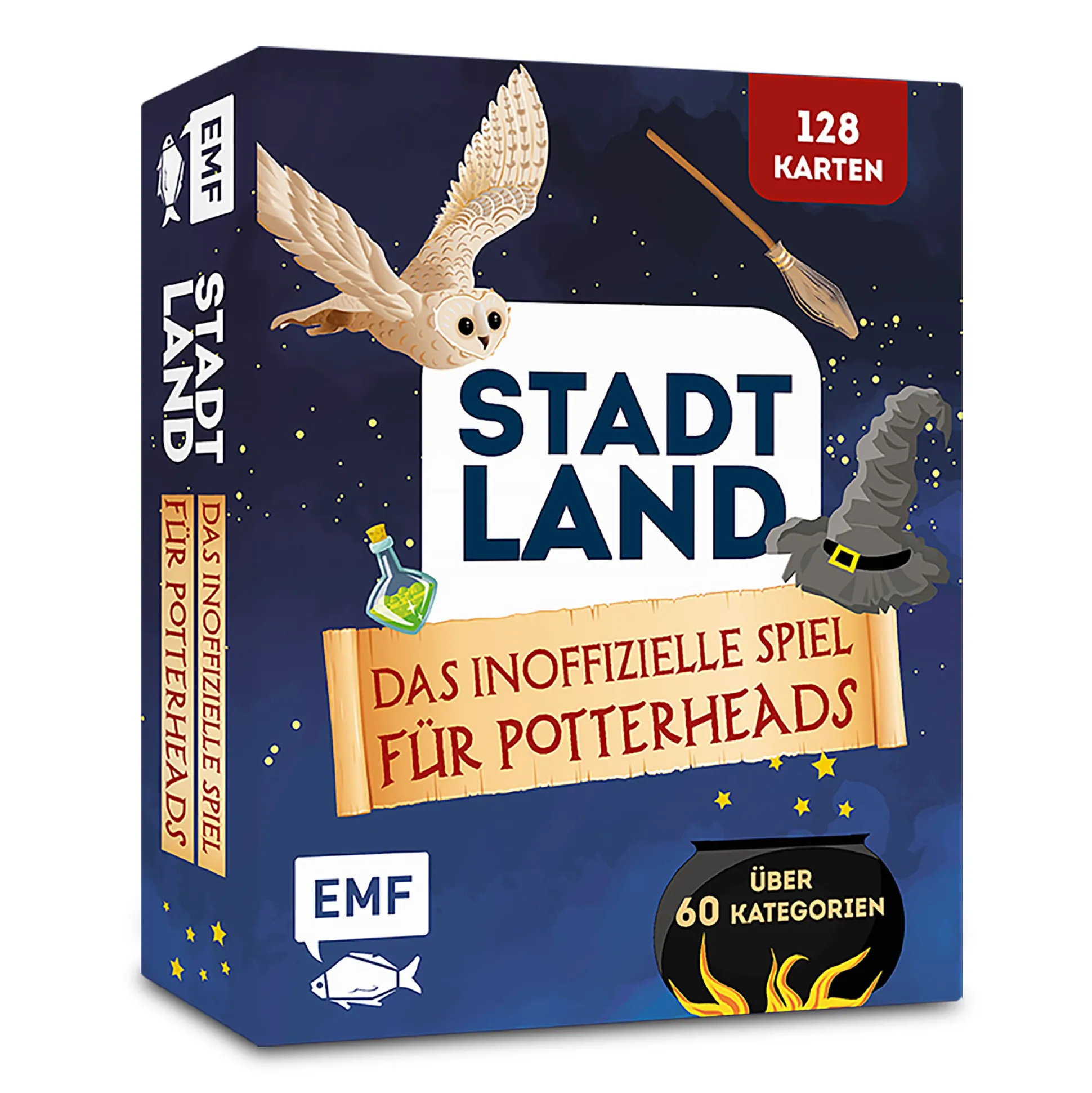 Stadt, Land, Potterhead! Dit onofficiële kaartspel voor Harry Potter‑fans (Duitstalige editie) maakt van de klassieker ‘Stadt, Land’ een magische snelvuurronde. 128 kaarten en 60+ categorieën – van spreuken en locaties tot schoolvakken – testen je Zweinstein‑kennis en brengen vaart aan tafel.
