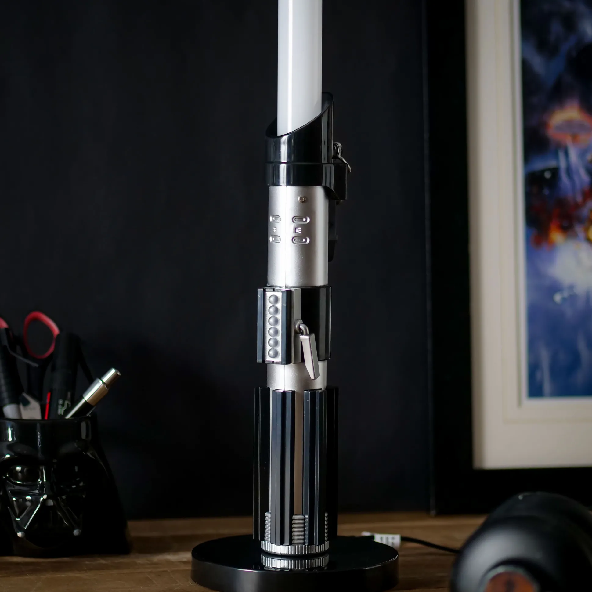 Laat de Dark Side je kamer verlichten: deze officieel gelicentieerde Star Wars-tafellamp in het iconische Darth Vader-lichtzwaarddesign zet je bureau in Sith-rood licht — zonder Force choke. De gedetailleerde zwaard-replica staat stevig op een voet met een diameter van 12 cm en is liefst 60 cm hoog. USB-voeding met schakelaar in het snoer; de 1,85 m kabel is inbegrepen. Geïntegreerde LED’s geven betrouwbaar rood licht en zijn niet vervangbaar — zo blijft de look strak. Perfect voor je gaming-setup, de plank of als statement naast je vitrinekast: dit lichtzwaard neemt de leiding over je dagelijkse verlichting.