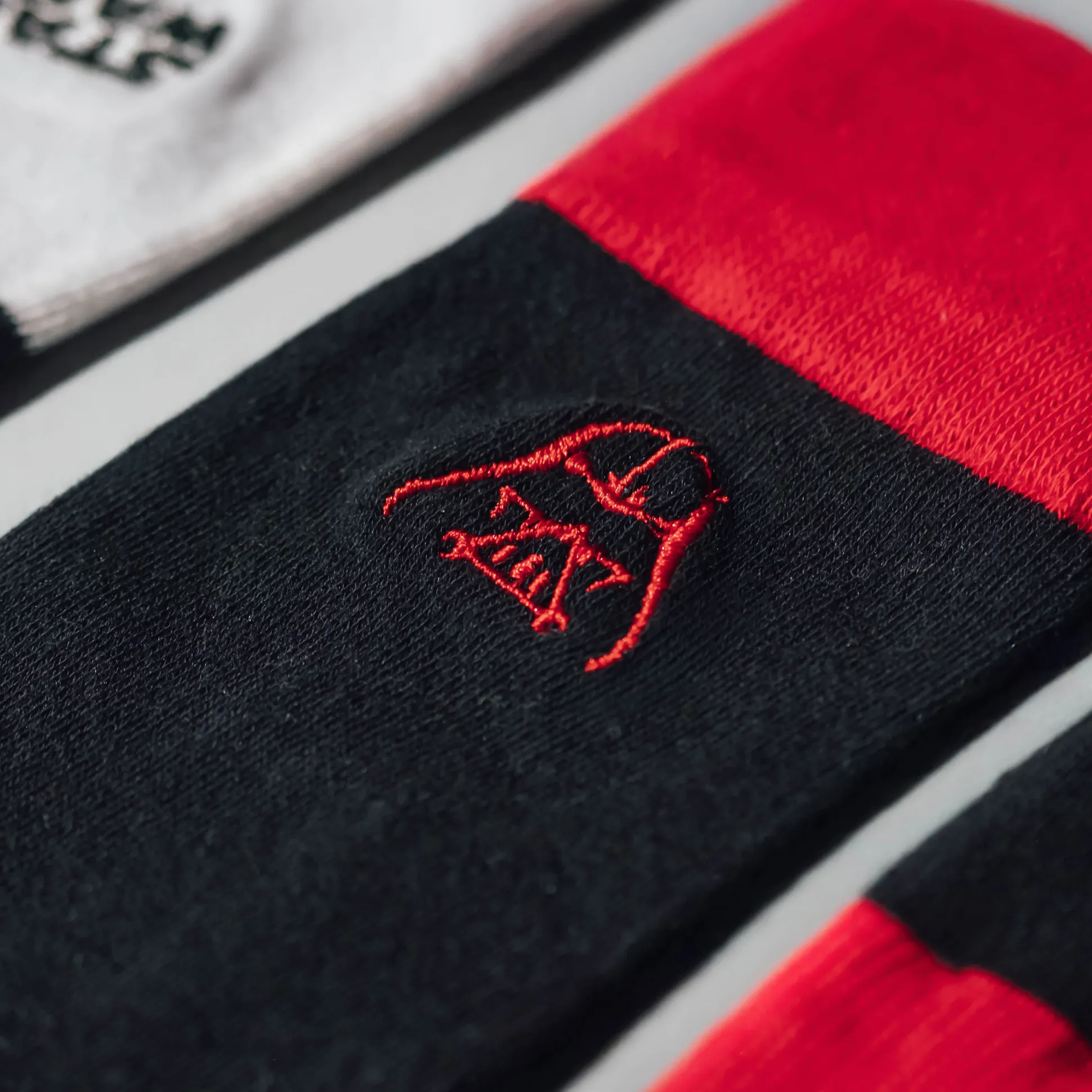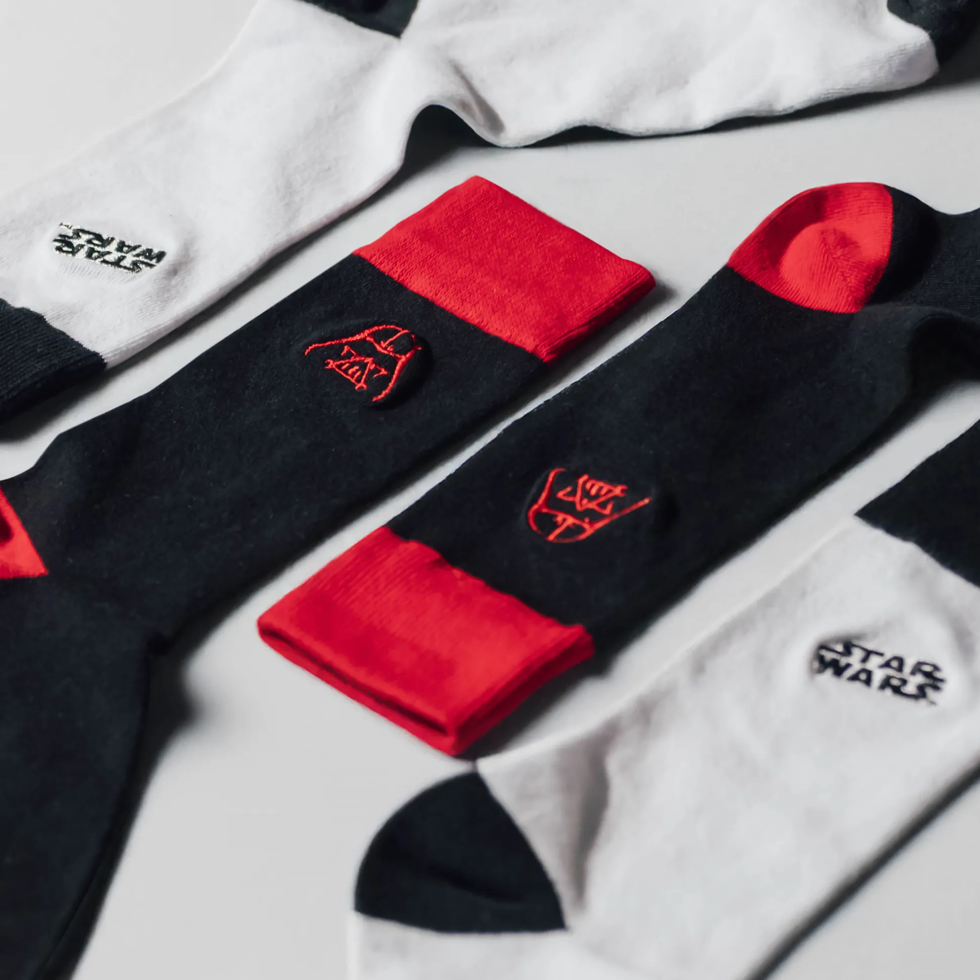 Zwart, wit, rood – het klassieke Vader-kleurenschema dat perfect past bij de rest van je Star Wars collectie. Voor op kantoor, bij een binge-watch-sessie of als cadeau voor iemand die de Force iets té serieus neemt: deze sokken zijn de ideale metgezellen op je pad naar de donkere kant.