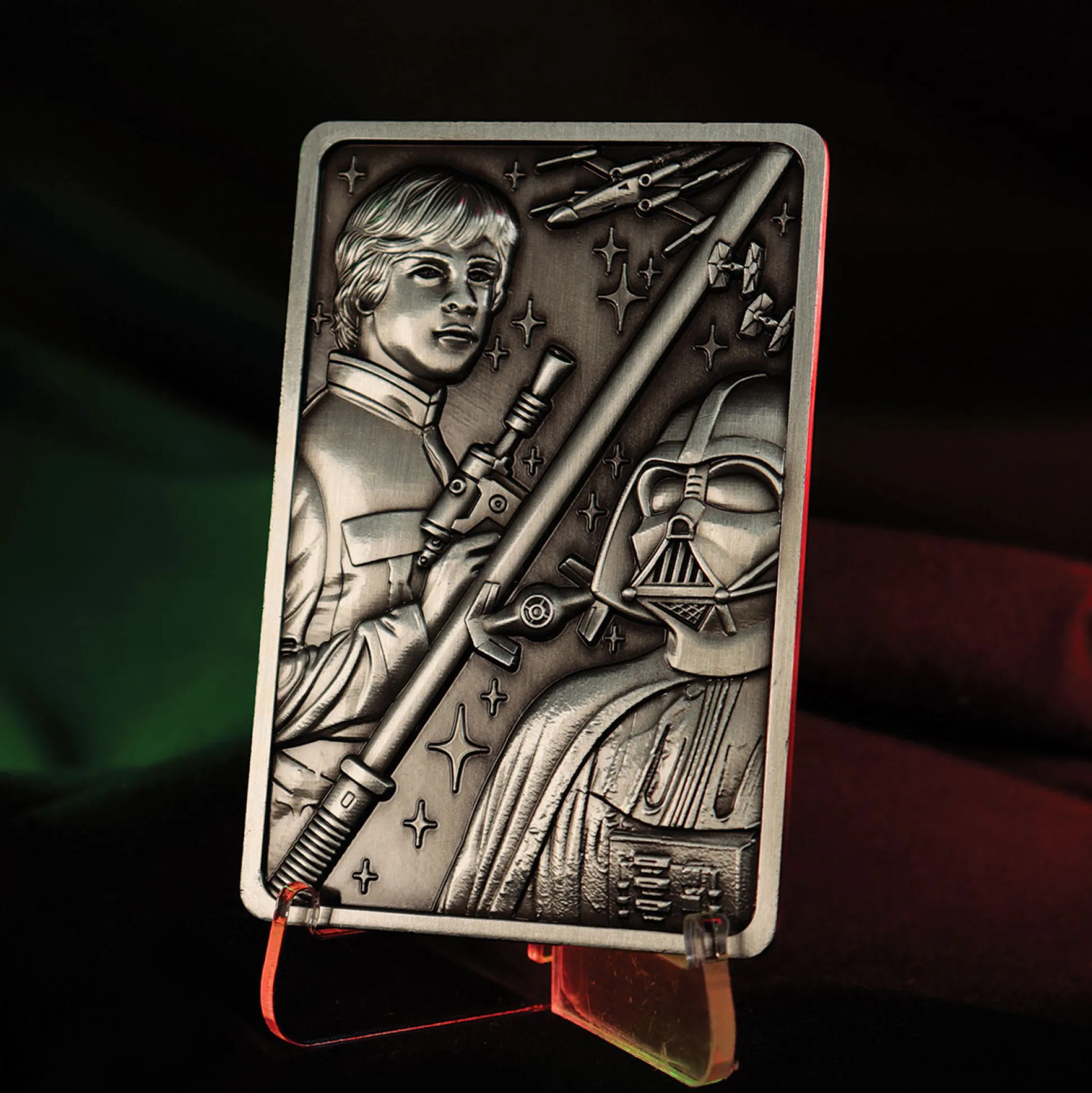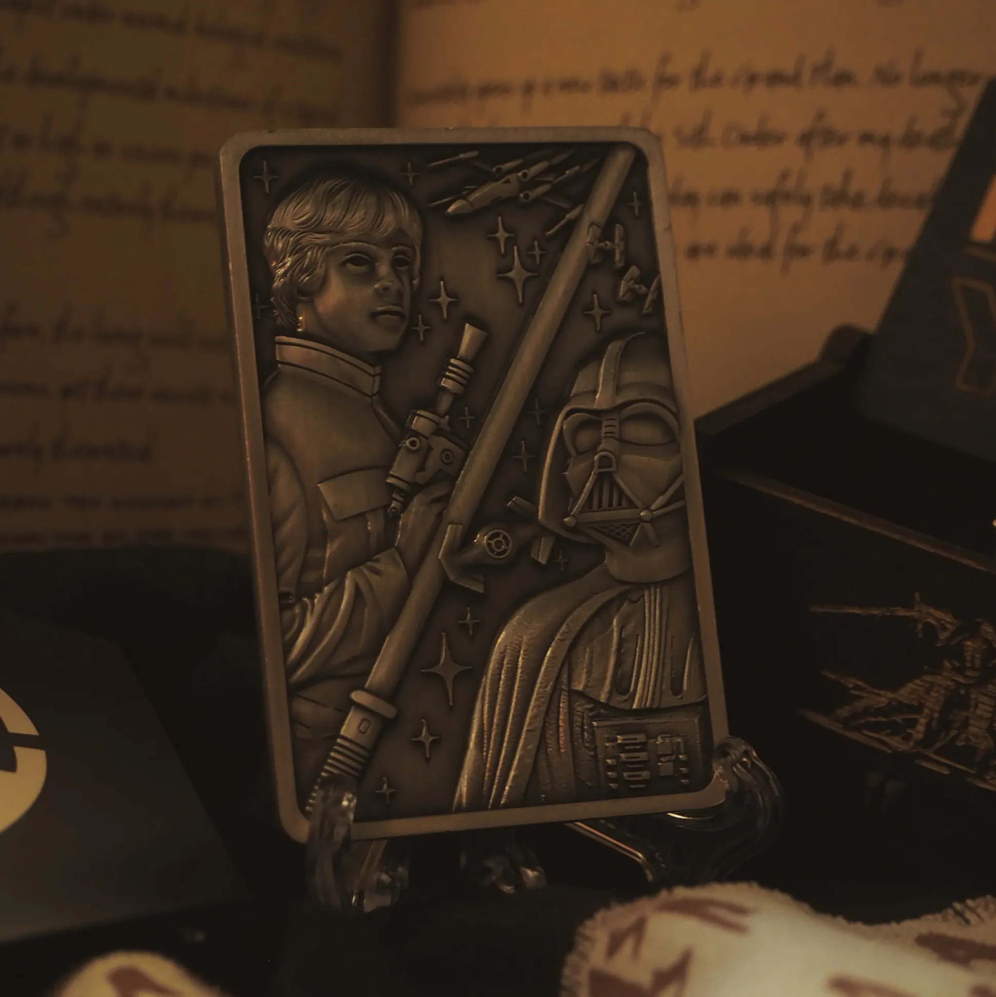 En het beste? Er zijn wereldwijd slechts 5000 stuks – dus grijp je unieke nummer voordat een andere Jedi of Sith je voor is! Met een formaat van 6 x 9 x 0,3 cm past de bar perfect in je collectie, en met de meegeleverde standaard kun je hem trots laten zien – of het nu in je woonkamer, op je bureau of in je geheime Jedi-tempel is.