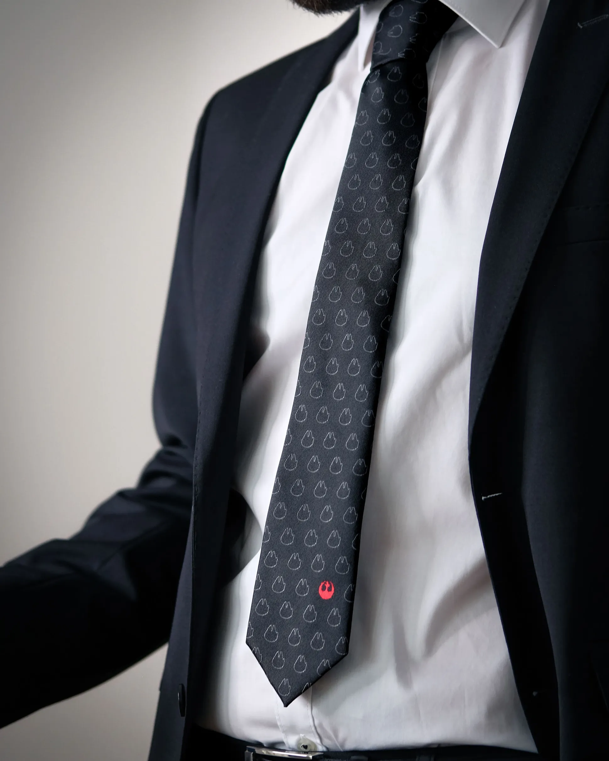 Rebel met stijl: deze officieel gelicentieerde Star Wars‑stropdas brengt de Rebellenalliantie naar je dagelijkse outfit. Subtiel, strak en helemaal kantoor‑proof; zo smokkel je een beetje galaxiereddende vibe in vergaderingen, bruiloften of dates — zonder een zoemend lichtzwaard.