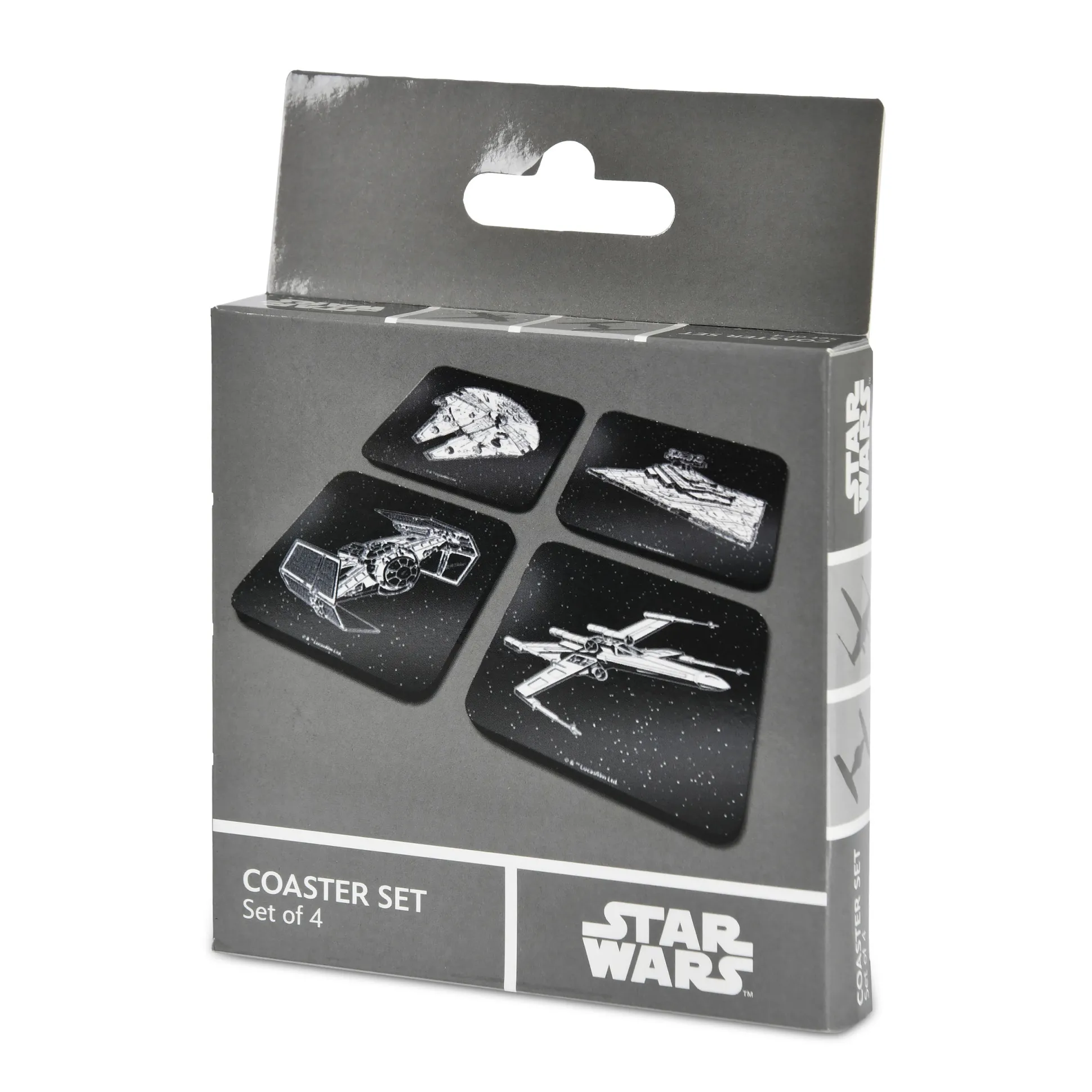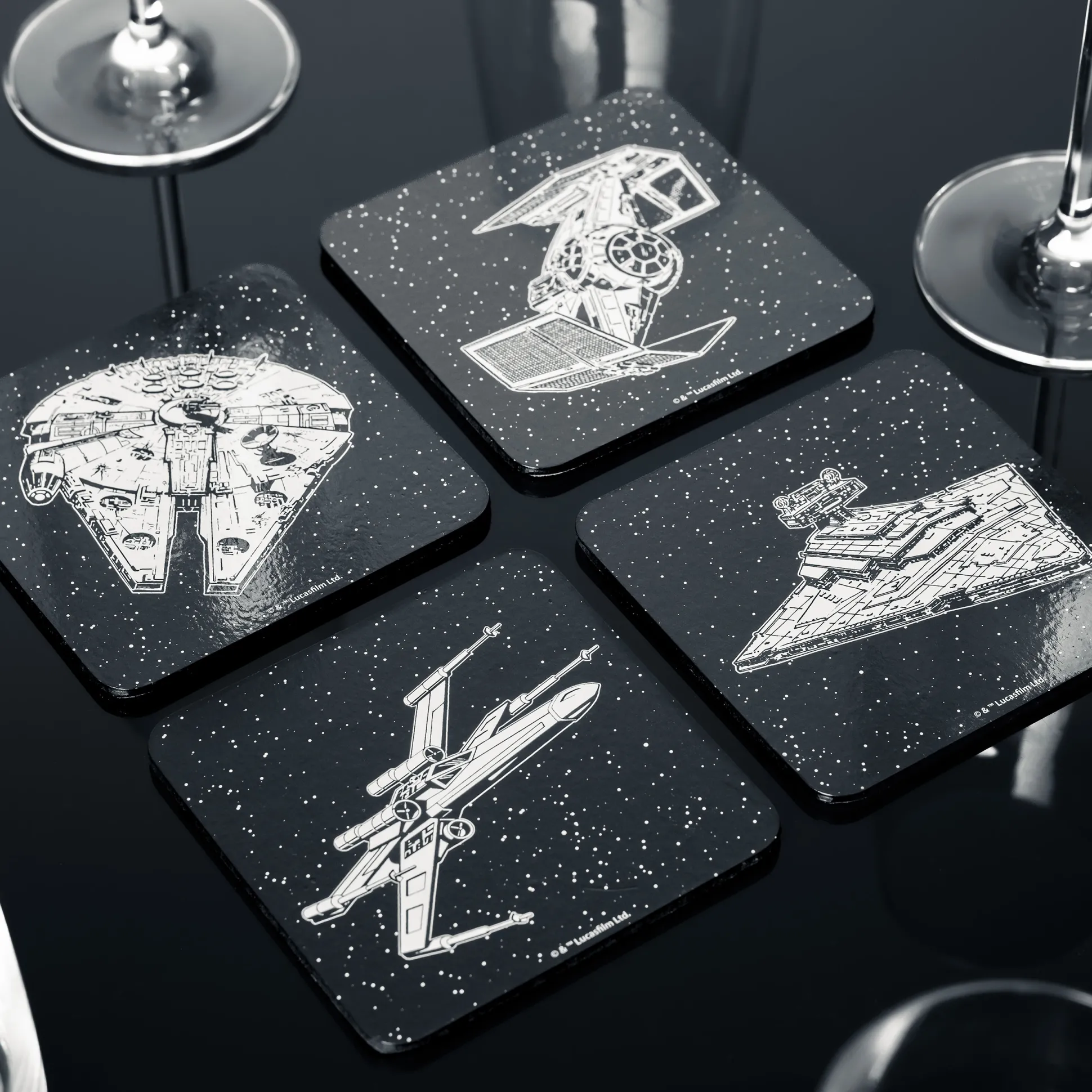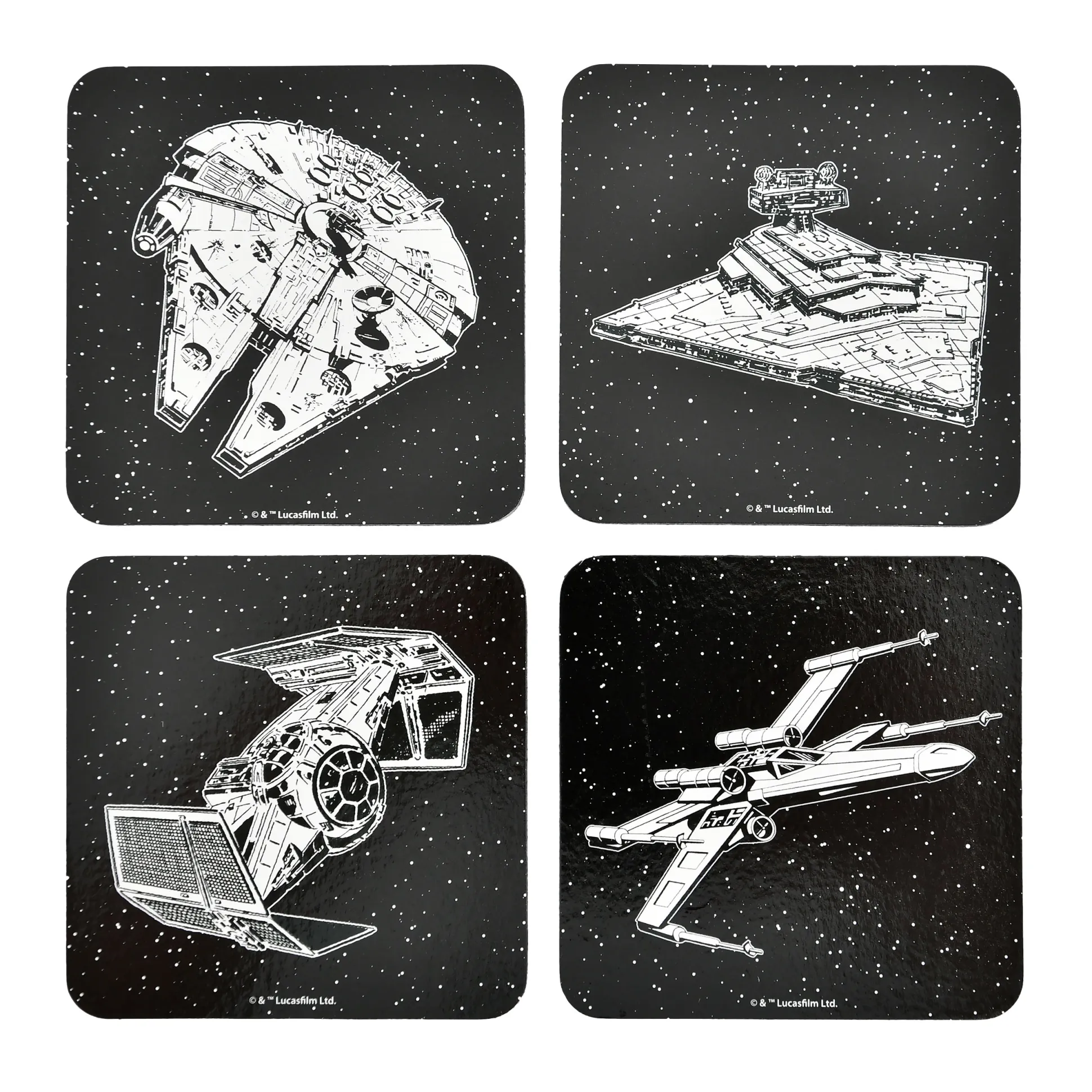 Kies je jager, red de tafel. Deze officieel gelicentieerde Star Wars onderzetter-set landt de meest iconische schepen op je salontafel: Millennium Falcon, X-wing, TIE Fighter en een Star Destroyer — allemaal klaar om opstandige kringen de hyperspace in te jagen. 4-delig, elk 10 x 0,4 x 10 cm, stevig en makkelijk schoon te maken — perfect voor mokken, glazen en Original Trilogy-marathons. Een cadeau voor Rebellen en ambitieuze Imperials — of voor je eigen brug. Je drankje krijgt een landingsplaats; je meubels blijven aan de lichte kant.