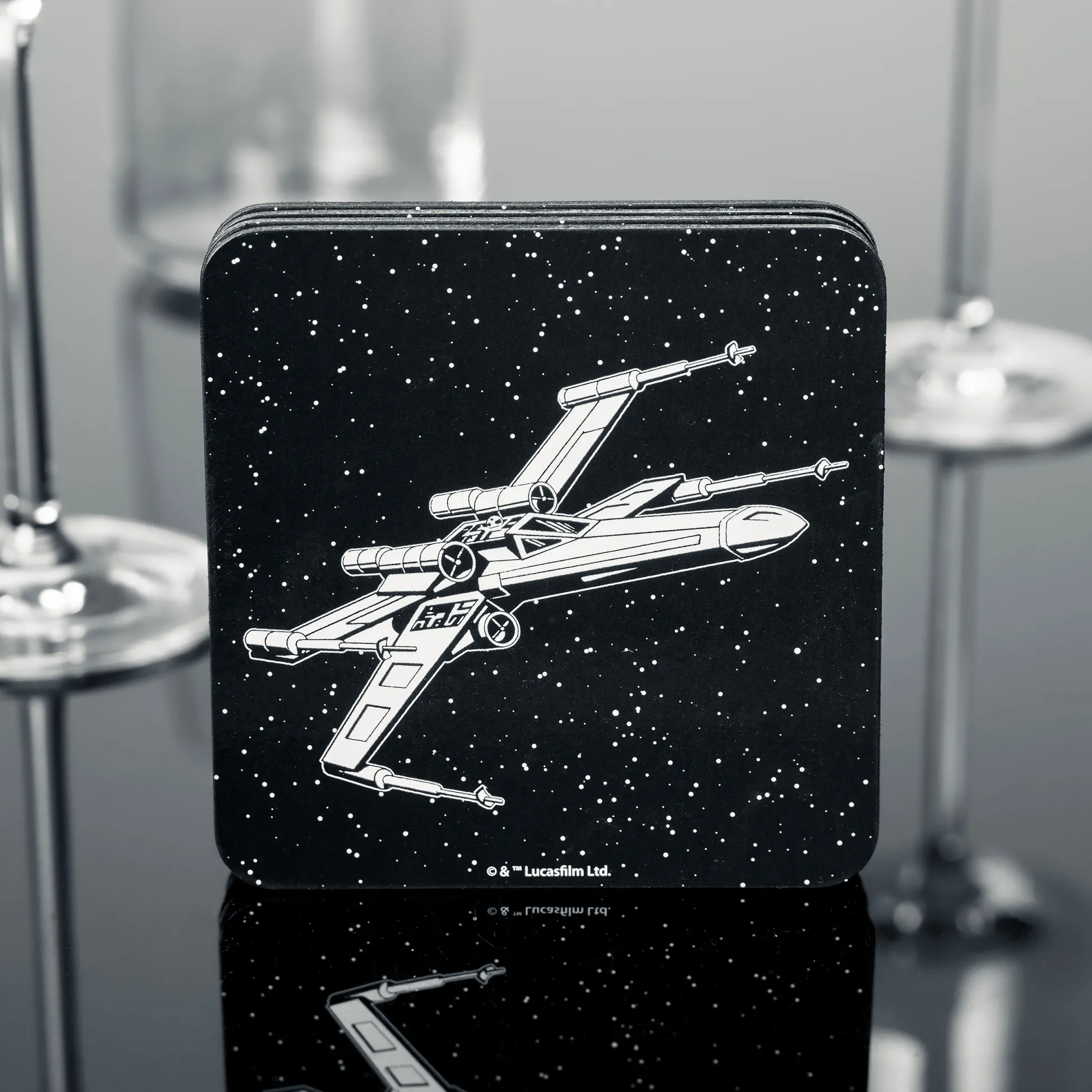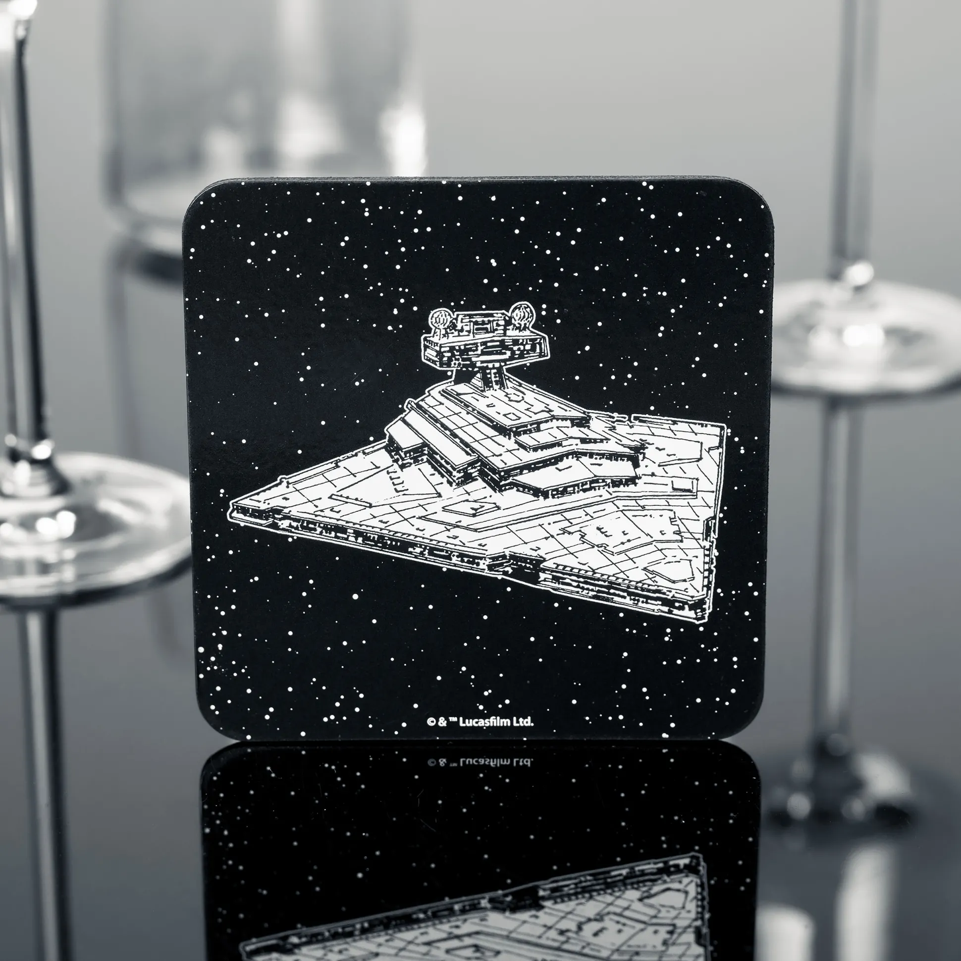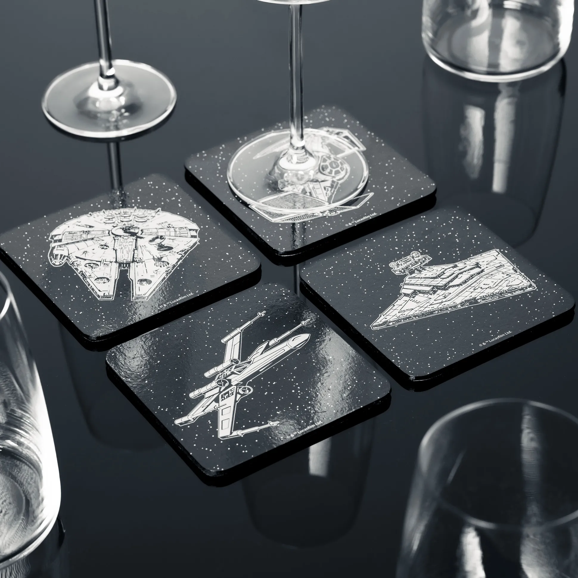 Kies je jager, red de tafel. Deze officieel gelicentieerde Star Wars onderzetter-set landt de meest iconische schepen op je salontafel: Millennium Falcon, X-wing, TIE Fighter en een Star Destroyer — allemaal klaar om opstandige kringen de hyperspace in te jagen. 4-delig, elk 10 x 0,4 x 10 cm, stevig en makkelijk schoon te maken — perfect voor mokken, glazen en Original Trilogy-marathons. Een cadeau voor Rebellen en ambitieuze Imperials — of voor je eigen brug. Je drankje krijgt een landingsplaats; je meubels blijven aan de lichte kant.