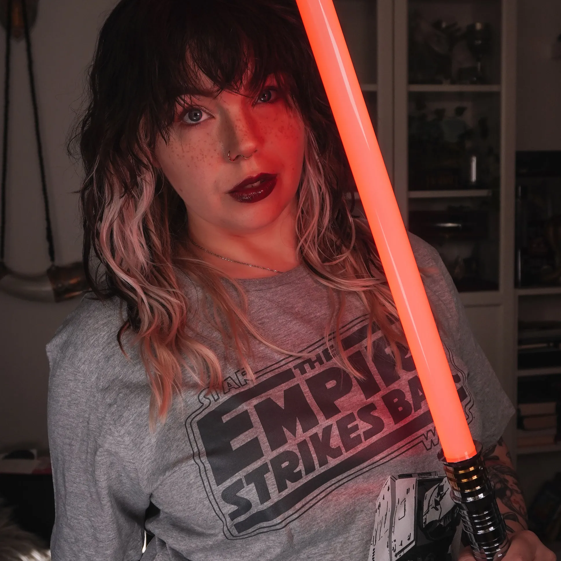 - grote frontprint met “The Empire Strikes Back”