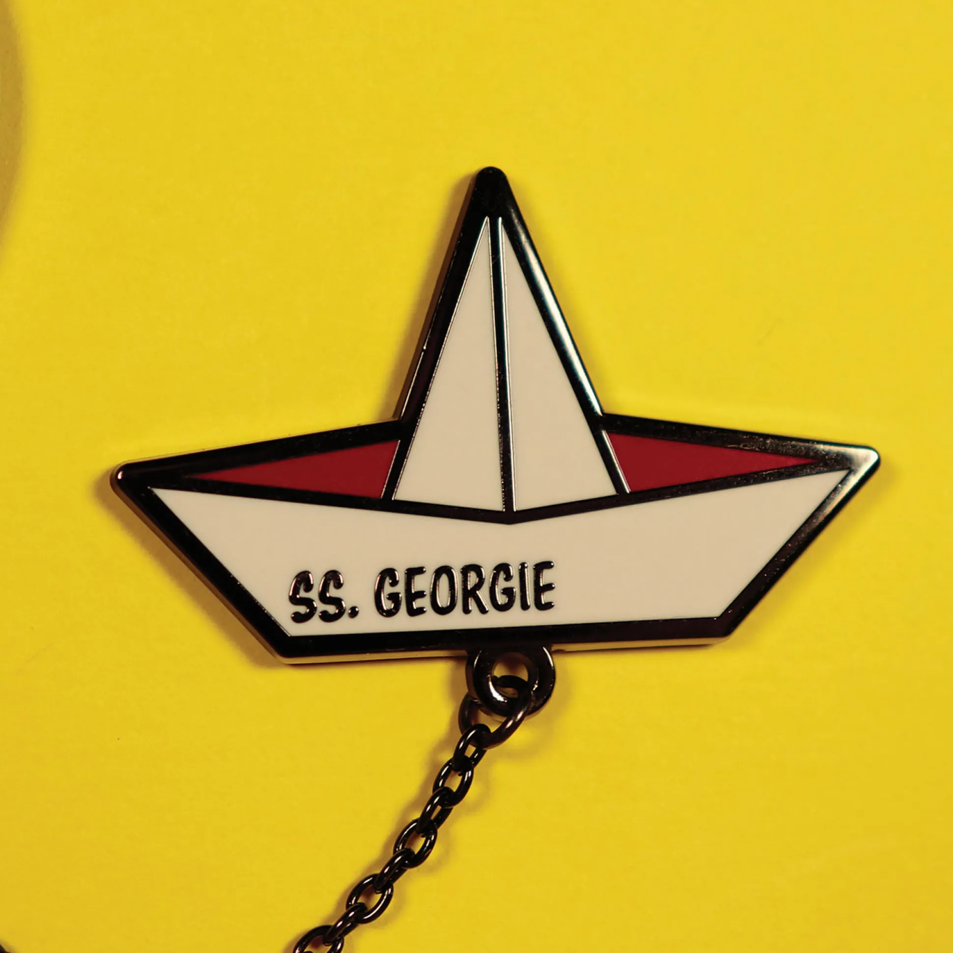 Ballon + papieren boot = pure IT-sfeer. Deze officieel gelicentieerde pinset voor Stephen King’s IT zet beide iconen op je jas of tas. De pins zijn met een metalen ketting verbonden, alsof de ballon het bootje meevoert. Gelimiteerd tot 5.000 stuks wereldwijd en individueel genummerd — pak de jouwe voordat ’ie in het riool verdwijnt. Afmetingen: Ballon 3,5 x 0,2 x 4,5 cm; Boot 4,5 x 0,2 x 2,7 cm.