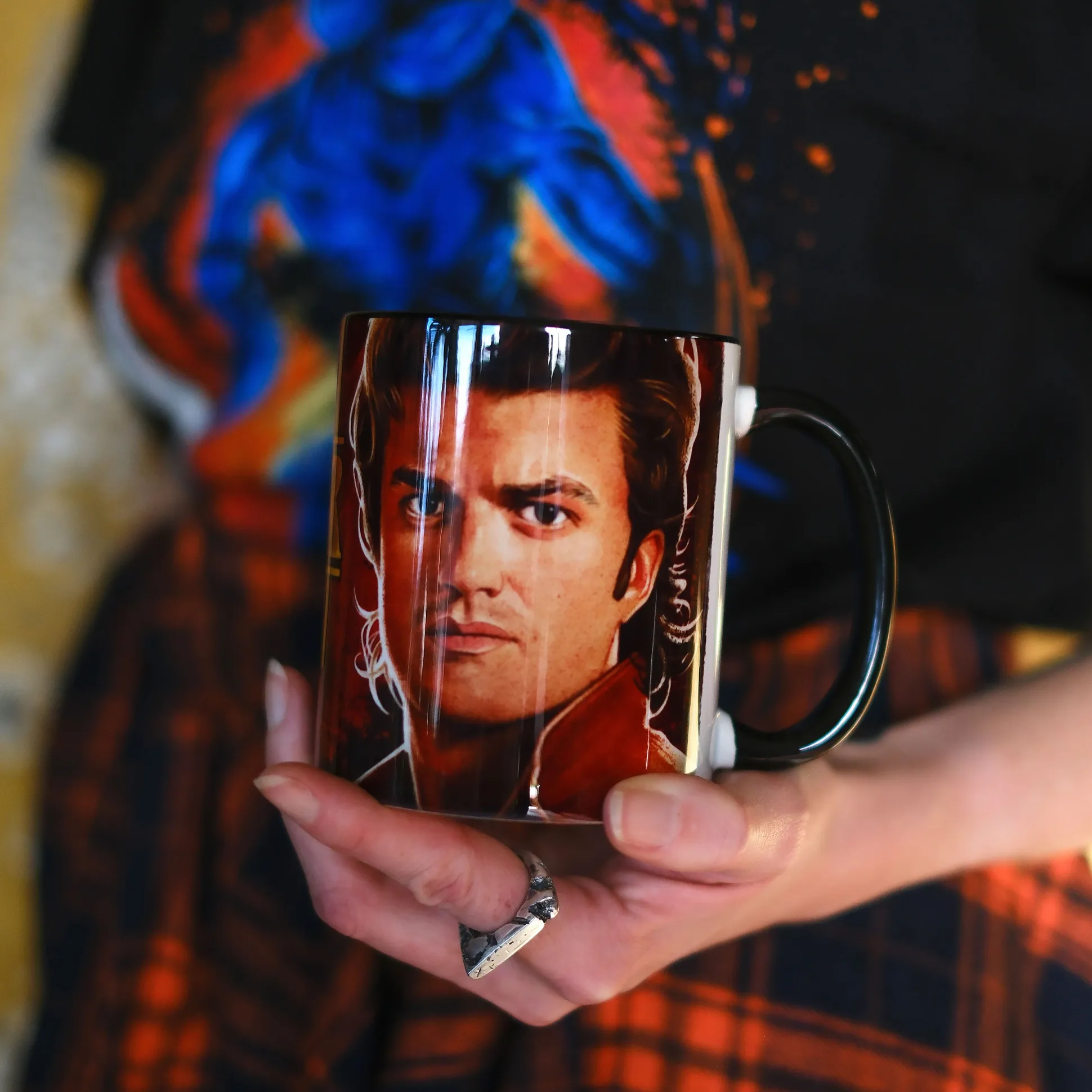 Voor iedereen die gelooft in groot haar, nog grotere harten en koffie: Steve staat voor je klaar. Deze officieel gelicentieerde Stranger Things‑mok toont Steve Harrington in de stijl van de Final Season (seizoen 5) en brengt Hawkins‑vibes rechtstreeks je keuken in. Inhoud 320 ml – genoeg voor een heldenslok vóór je volgende Demogorgon‑dienst. En omdat het dagelijks leven al pittig genoeg is, is de mok geschikt voor vaatwasser en magnetron. Kort gezegd: robuust, stijlvol, ready for action. Het perfecte cadeau voor fans die Hawkins’ favoriete babysitter aan de ontbijttafel willen – of gewoon een statement voor jezelf.