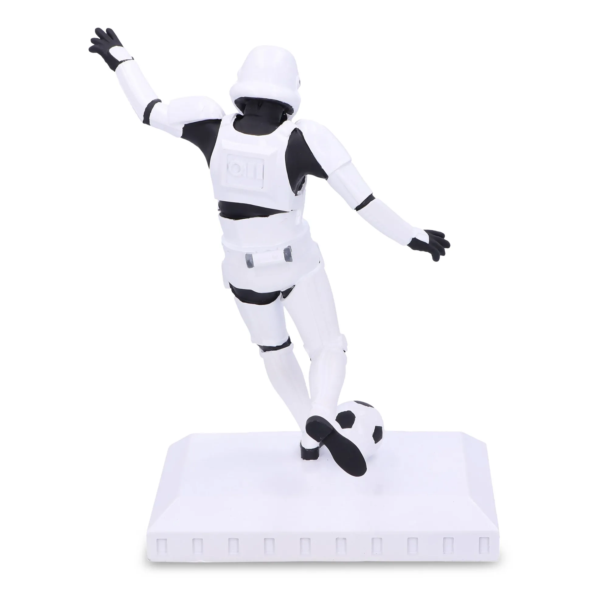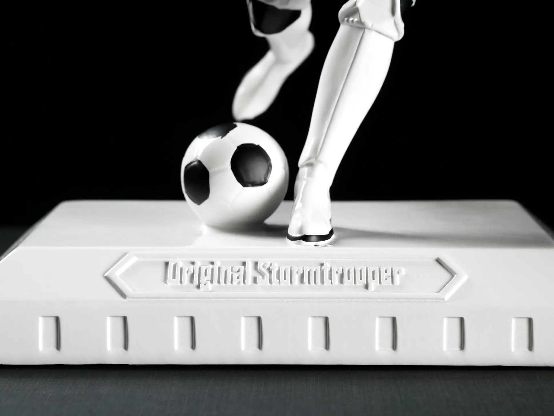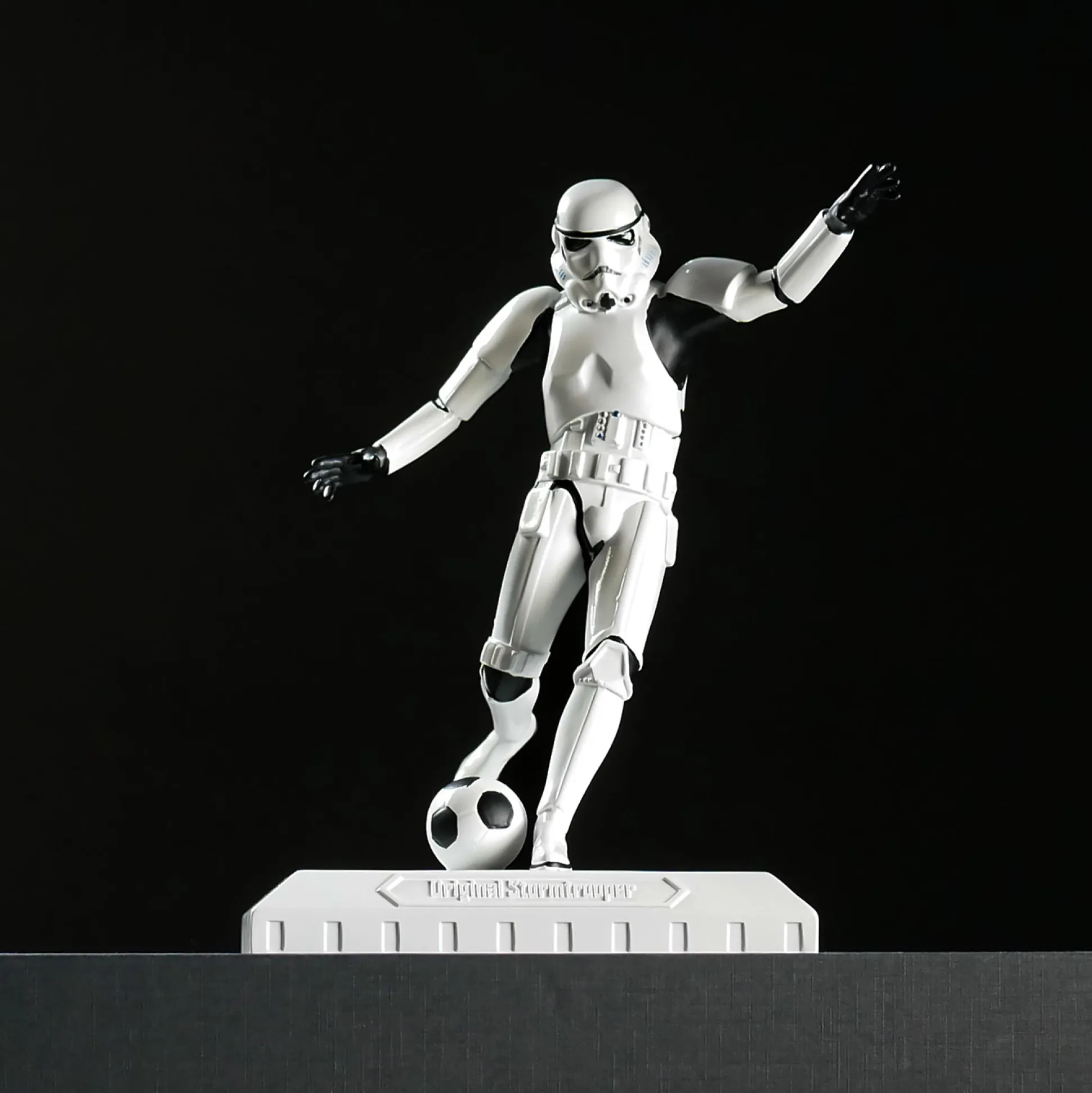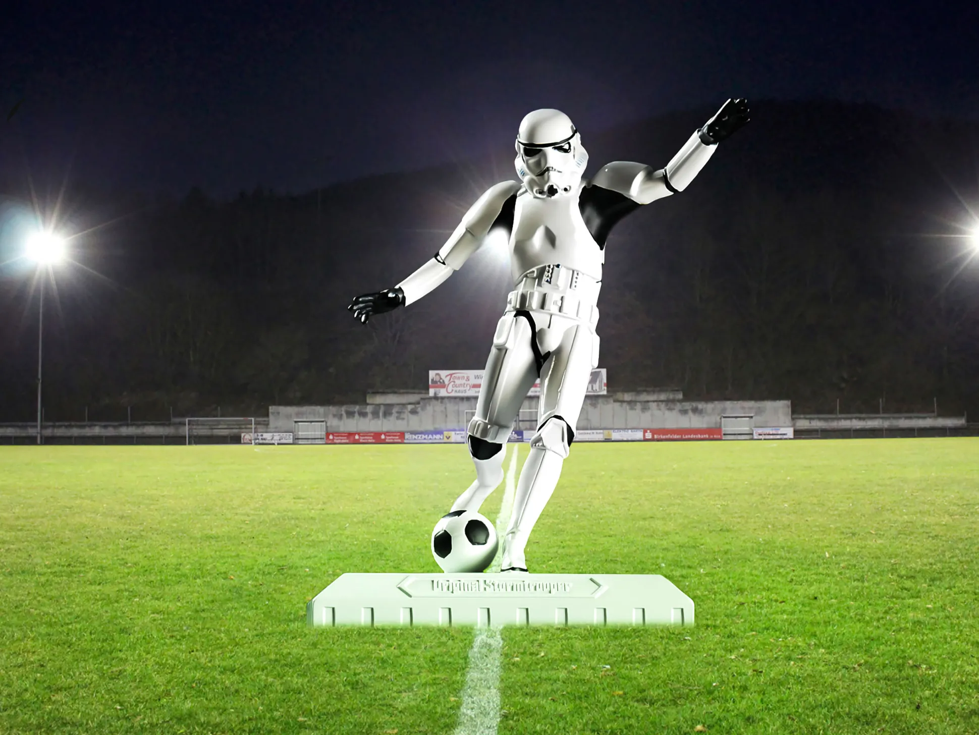 - in de stijl van een voetballende Stormtrooper