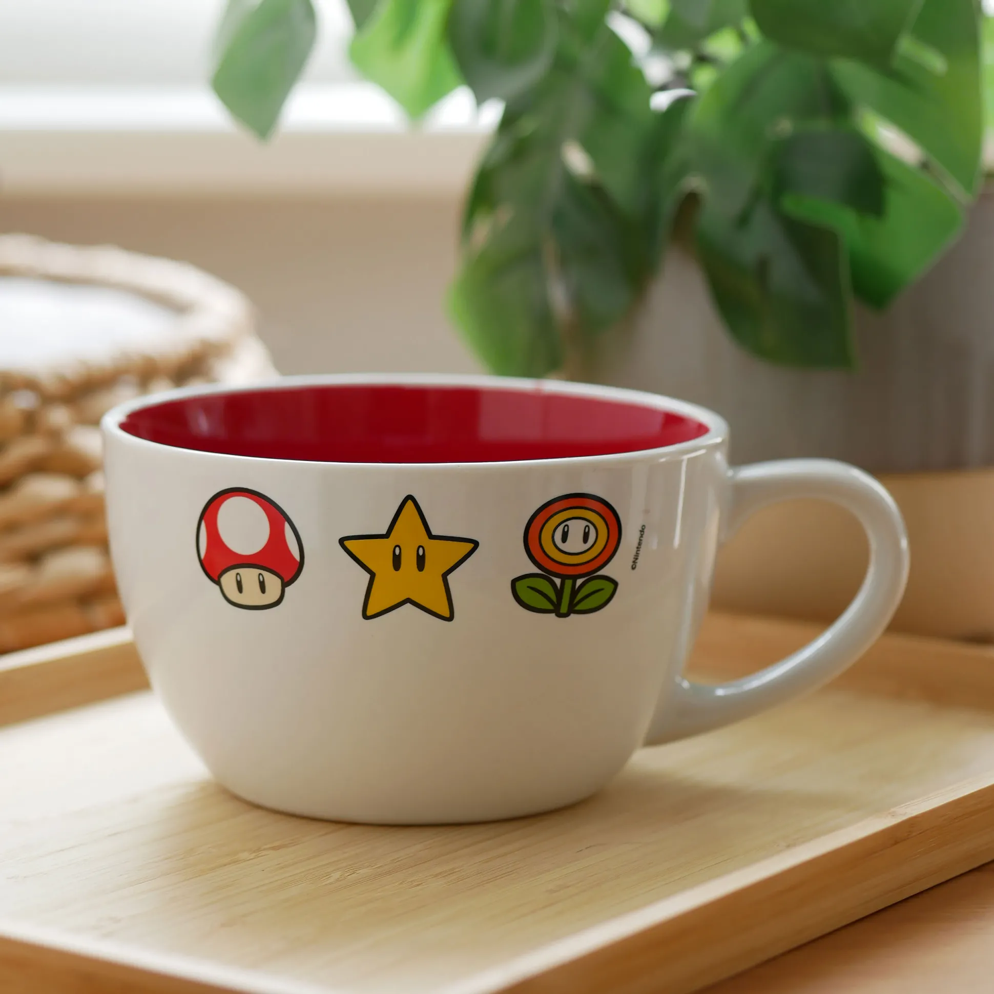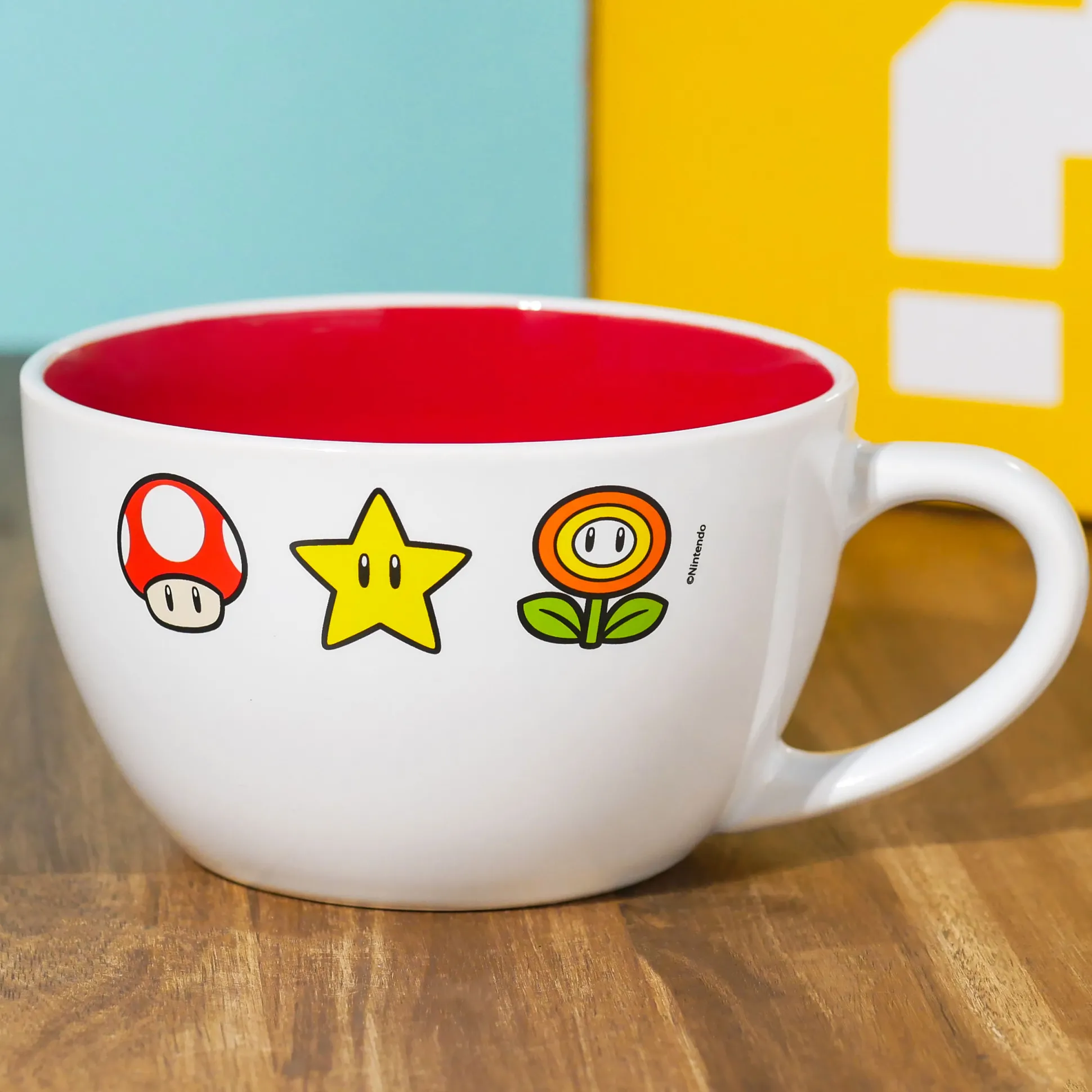 Toe aan een power‑up? Deze officieel gelicentieerde Nintendo Super Mario mok brengt de Paddenstoelenrijk‑vibe naar je bureau met het logo en iconen als de Vuurbloem en Superpaddenstoel. In XXL‑formaat met 630 ml bevat ’ie genoeg brandstof voor lange speelsessies, maandagquests en eindbaas‑meetings. Wit aan de buitenkant, rood van binnen — net zo opvallend als een ?‑blok in Wereld 1‑1. En omdat niemand tijd heeft voor een echte game over, is ’ie vaatwas‑ en magnetronbestendig.