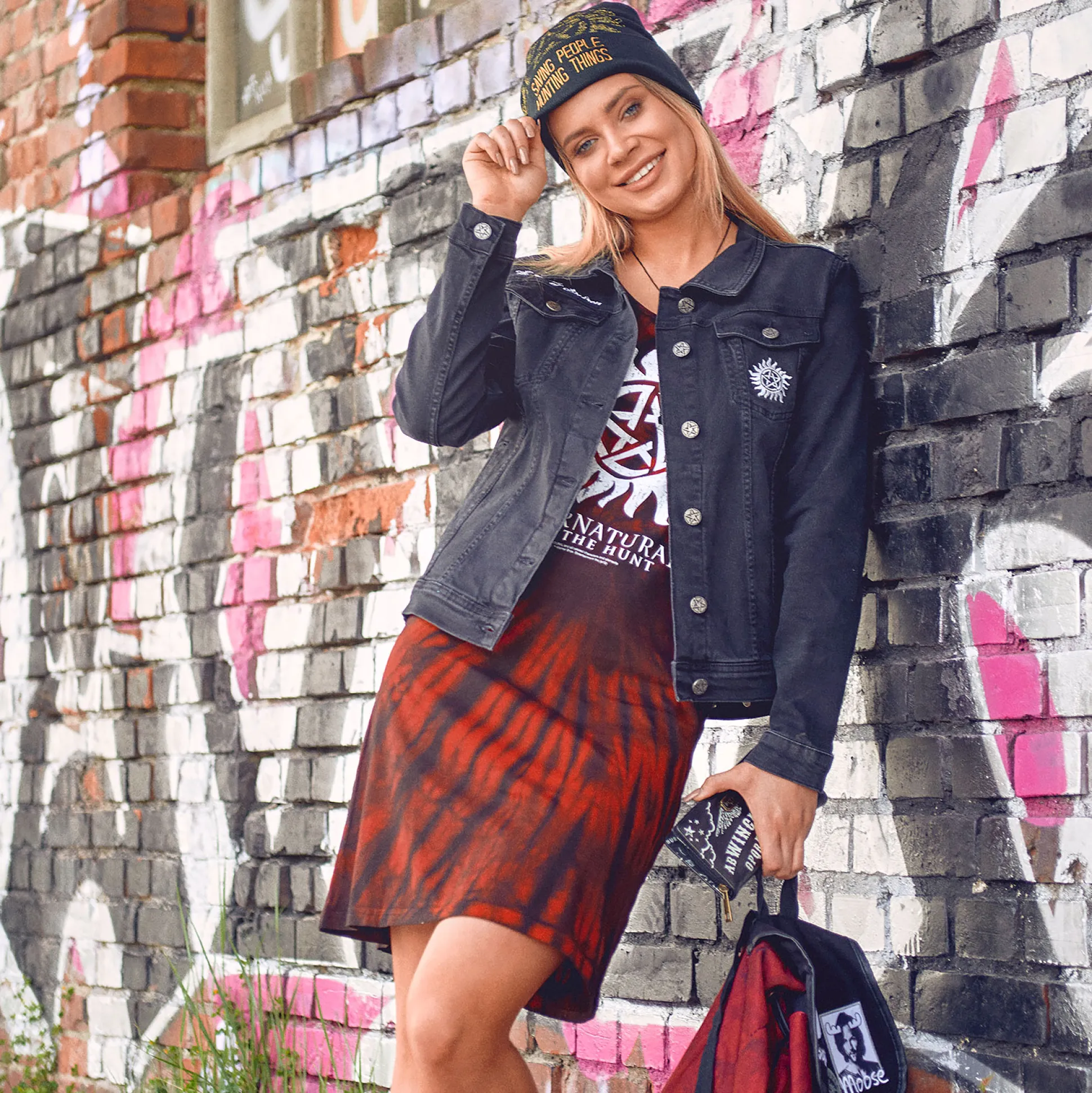 Demoon in de buurt? Geen stress: met deze officieel gelicentieerde Supernatural mini-jurk ben jij nét zo onverslaanbaar als de Winchesters. Het mouwloze tanktop-jurkje in rood-zwarte batikstijl is voorzien van een groot Anti Possession-symbool op de voorkant – zo weet iedereen dat je geen bezetenheid tolereert. Dankzij de soepele en lichte stof ben je klaar voor elke jacht, cosplay-event of binge-sessie. Trek eropuit… in pure Supernatural-stijl!
