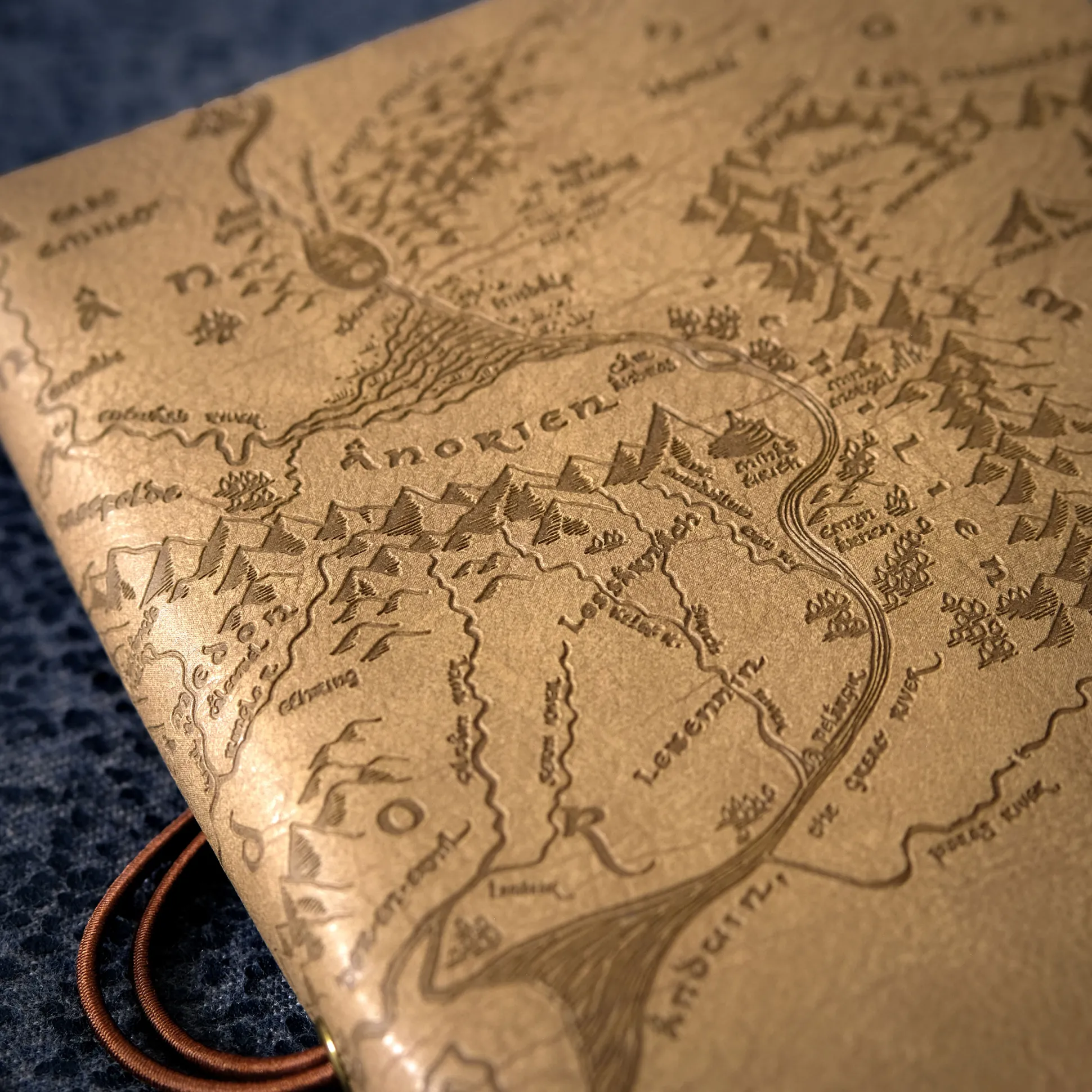- met in reliëf gemaakte Midden-aarde kaart op de voor- en achterkant
