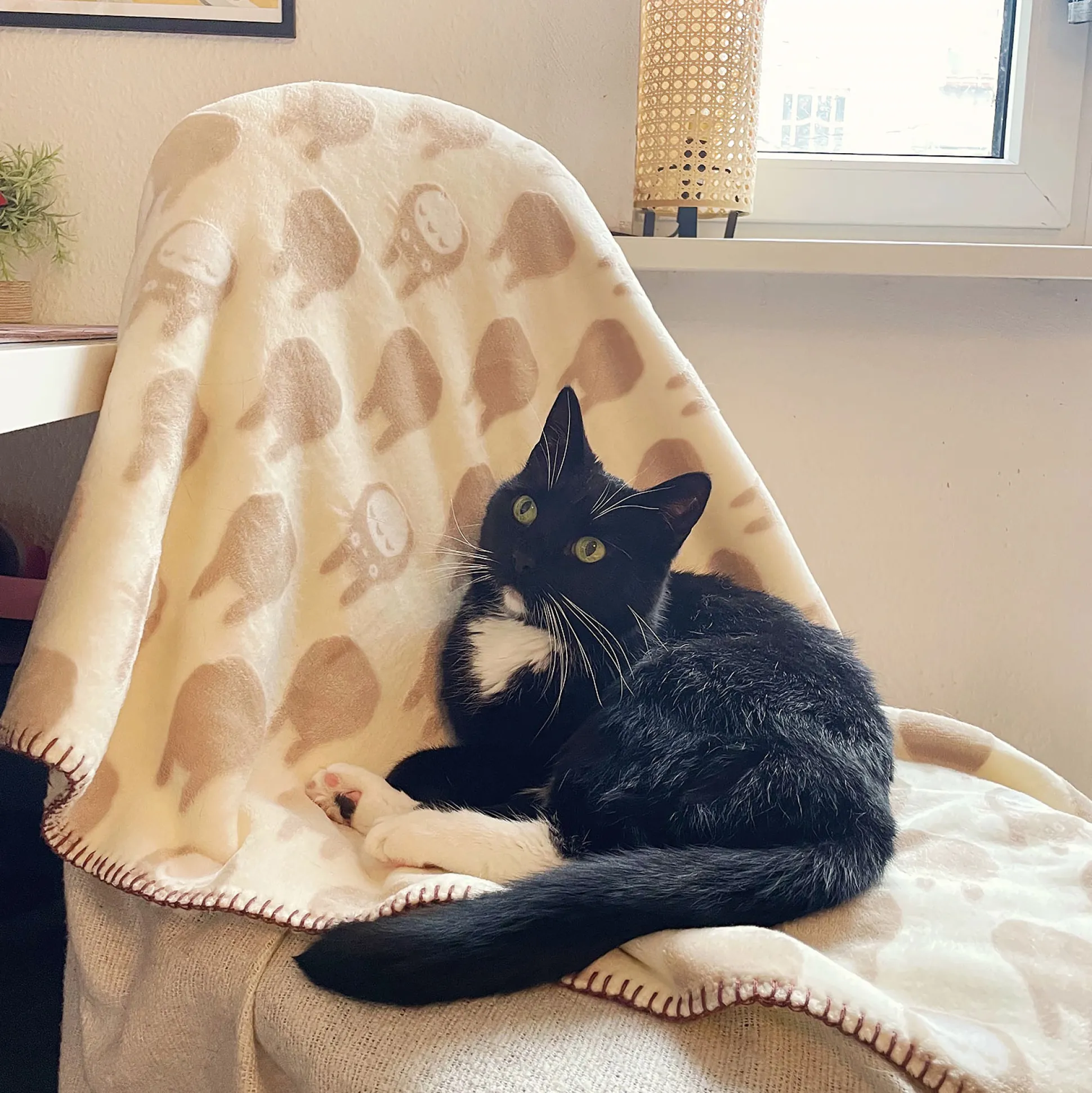 Totoro is de baas van dutjes — deze superzachte deken is je officiële uitnodiging. Voorop staat een Totoro‑silhouet uit Mijn buur Totoro in crème/beige, achterop zit extra zachte teddyfleece. Zo knus dat zelfs de bosgeesten het zouden goedkeuren.