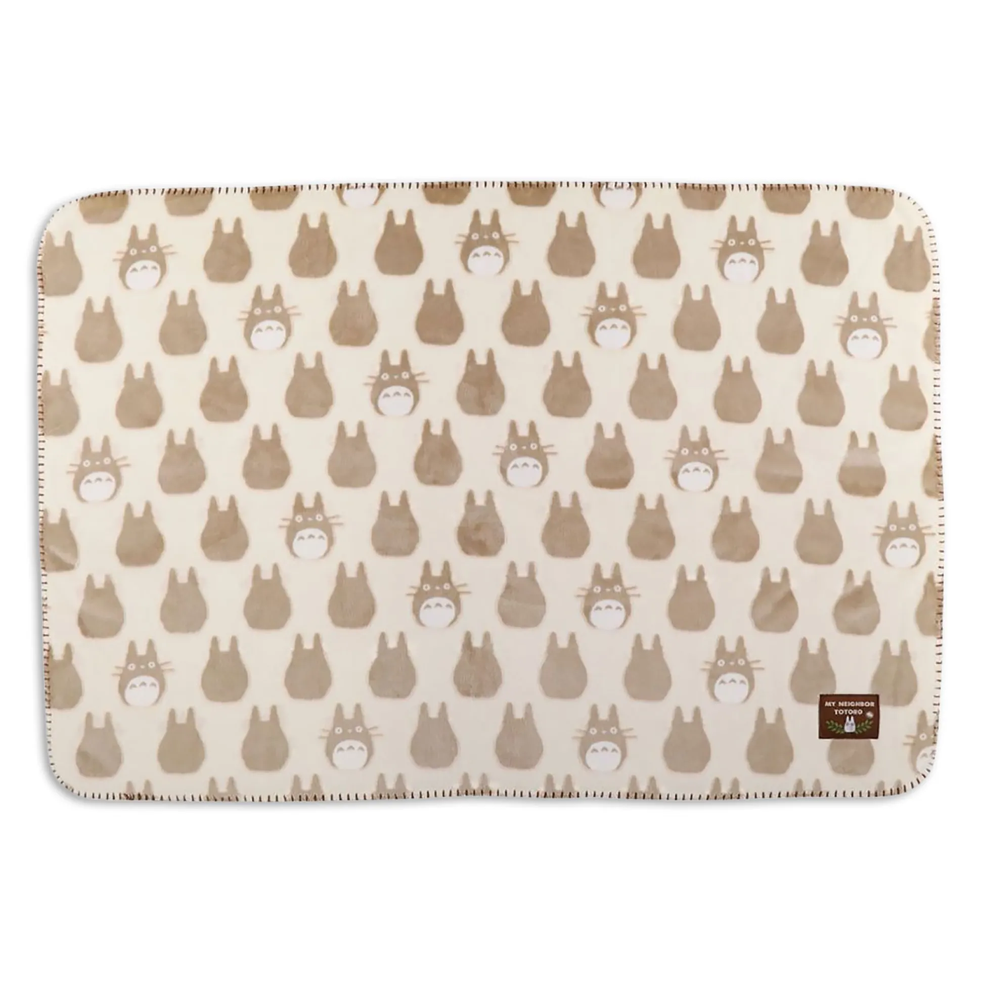 Officieel gelicentieerde Studio Ghibli-deken met geborduurd logopatch. Compact formaat van 100 x 70 cm — perfect voor de bank, het koele kantoor of onderweg. Kleuren: crème, beige; achterkant crème.