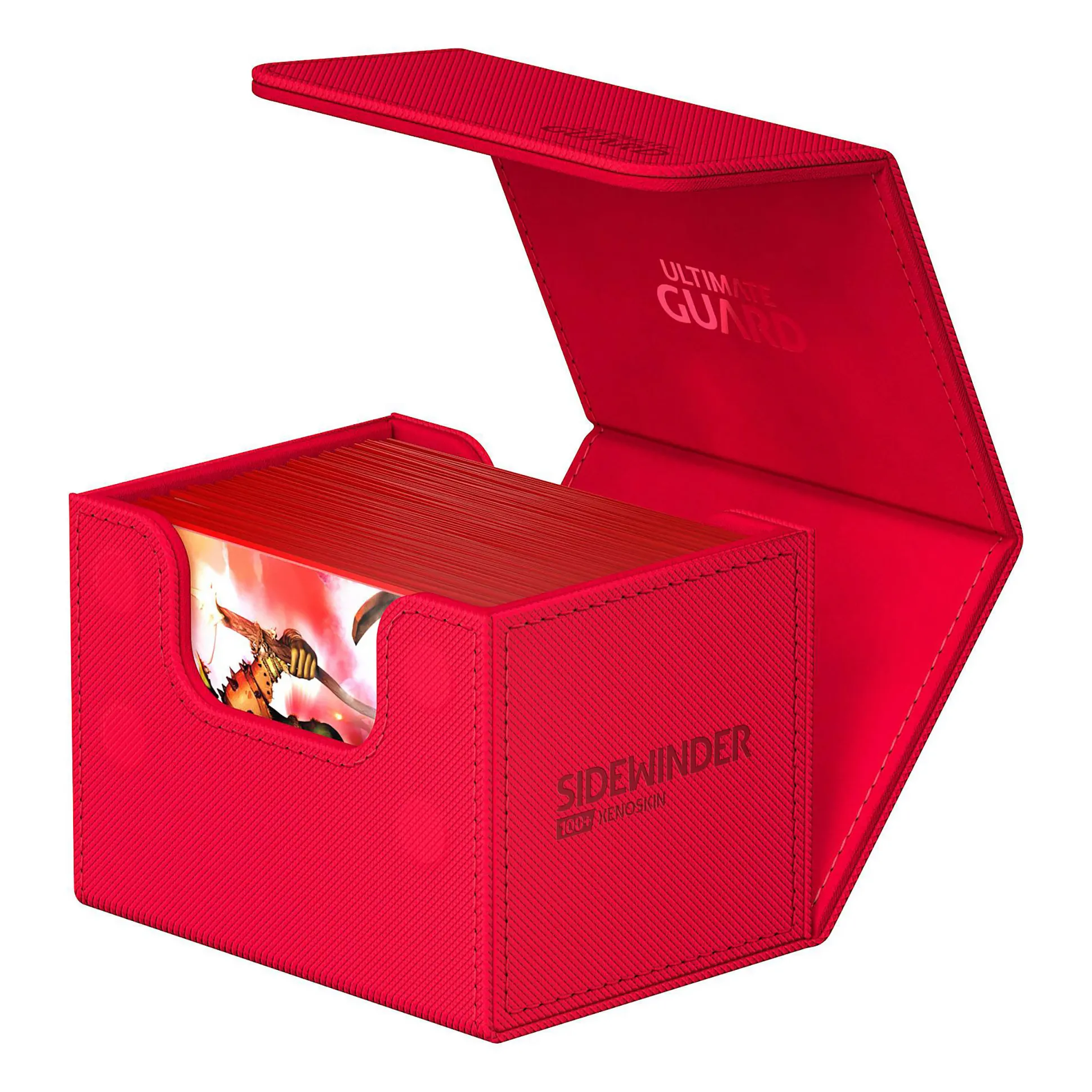 Gun je deck een VIP-plek: de Ultimate Guard Sidewinder 100+ in rood. Duurzaam XenoSkin-materiaal, sterke magneetsluiting en gemakkelijke zijtoegang. Biedt plaats aan tot 100 (double-sleeved) of 120 (single-sleeved) kaarten in Ultimate Guard hoesjes. Afmetingen (Sidewinder): buiten 10,4 x 8 x 8,5 cm; binnen 9,5 x 7 x 7 cm. Officieel gelicentieerde Ultimate Guard-kaartendoos. Ideaal voor het beschermen en vervoeren van je verzamelkaarten – perfect voor fans van Magic: The Gathering. Schudden, trekken, winnen – in stijl.