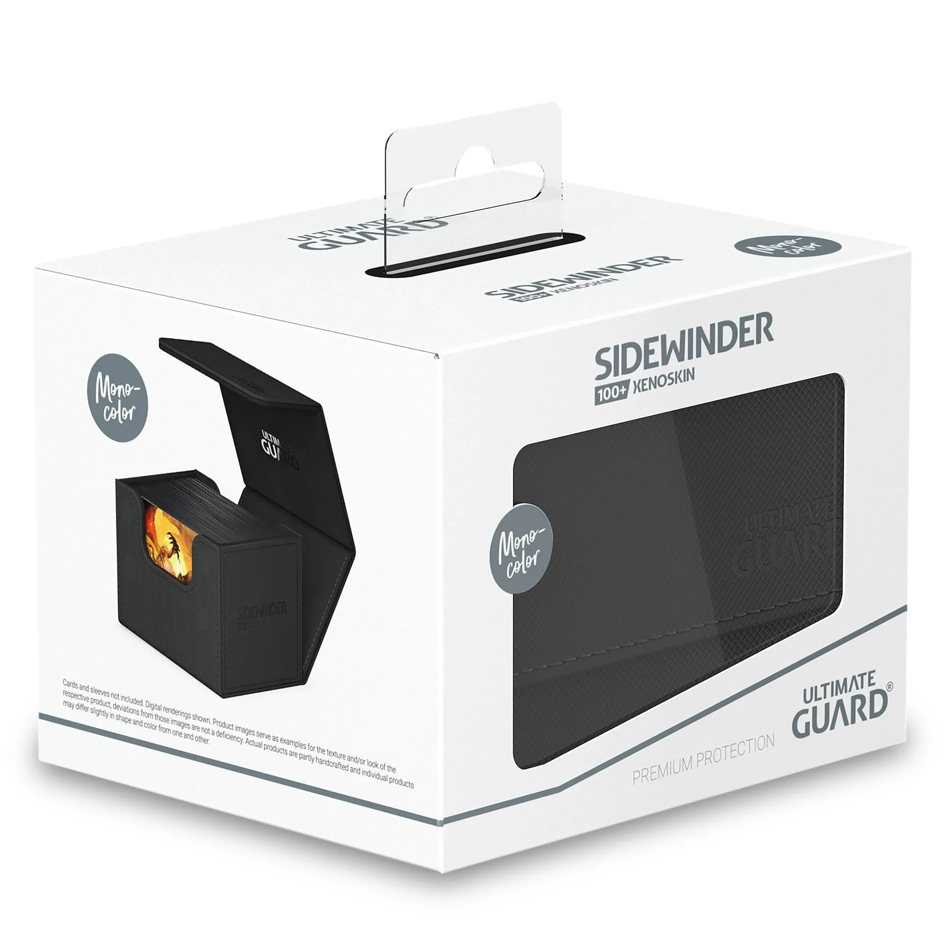- kan tot 100 (double-sleeved) of 120 (single-sleeved) kaarten in Ultimate Guard hoesjes bevatten