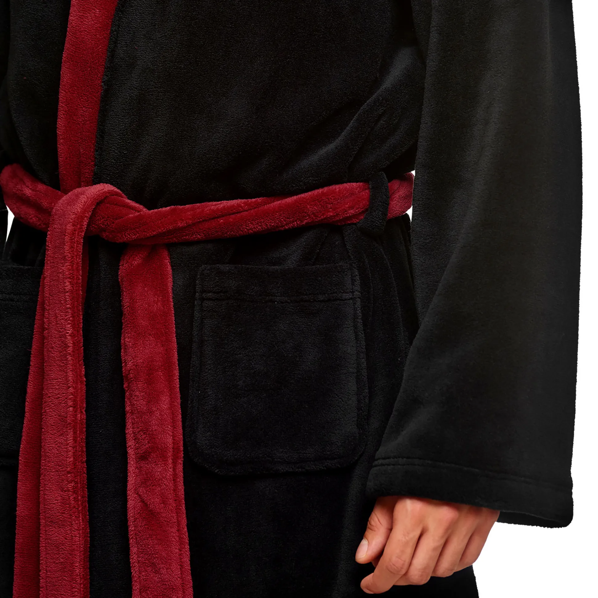 Feiten voor survivors: one size, royale 111 cm lang, zwart-rood – want bescheidenheid past niet bij zombies. Ideaal voor bank, badkamer of een veilige wandeling binnenshuis. Scoor die badjas en laat de walkers jouw stijl zien!