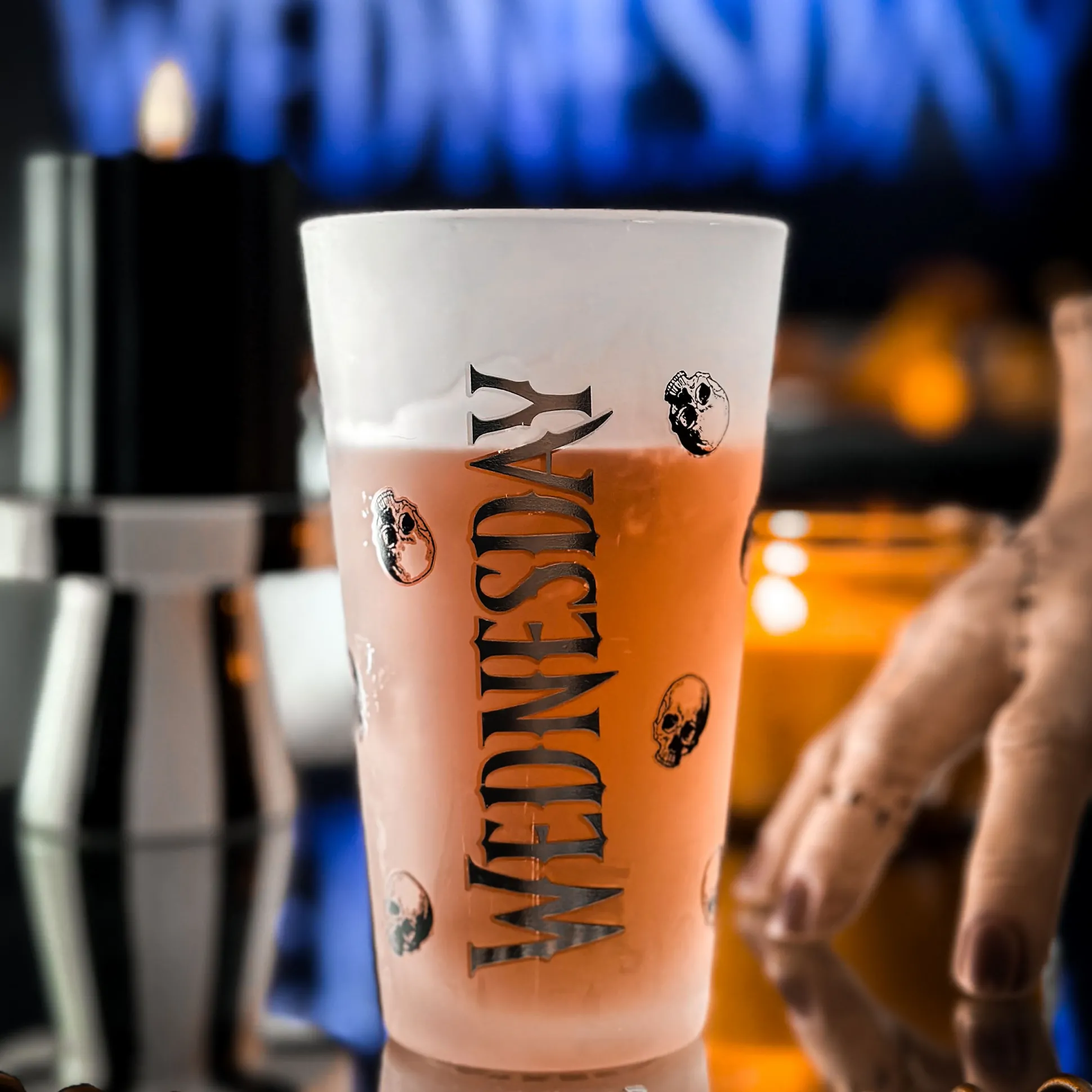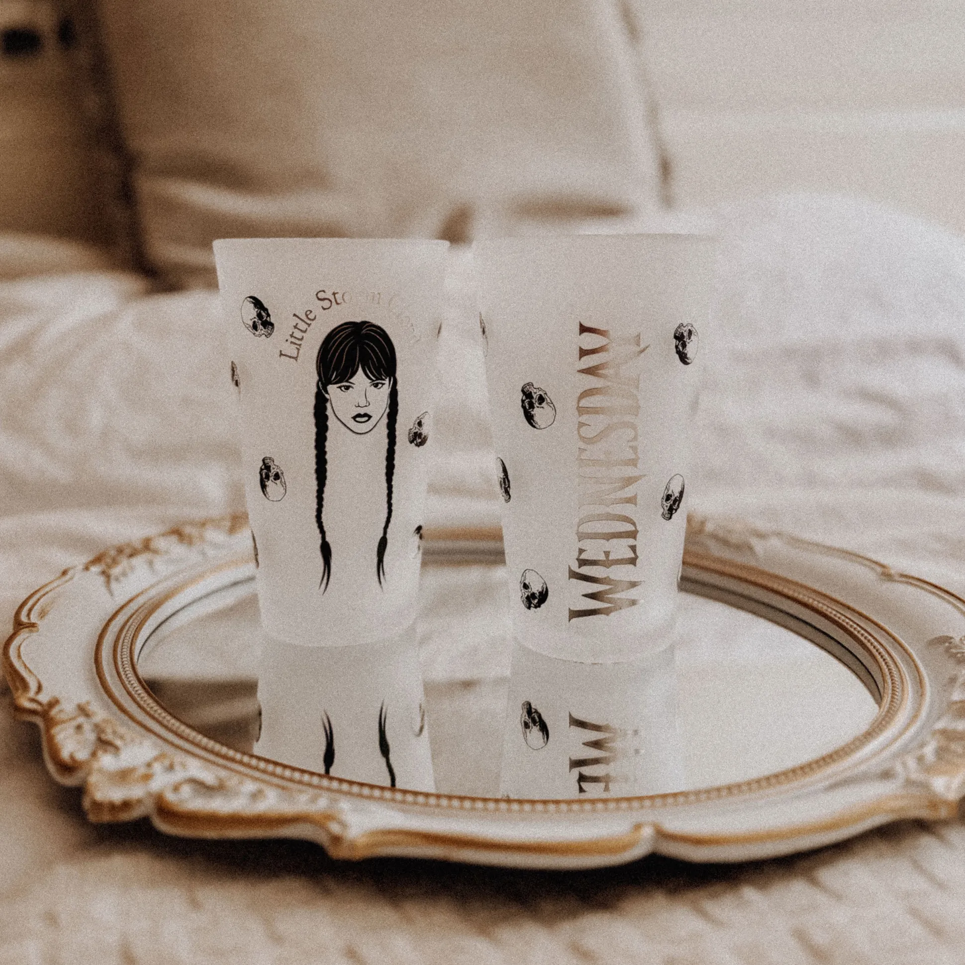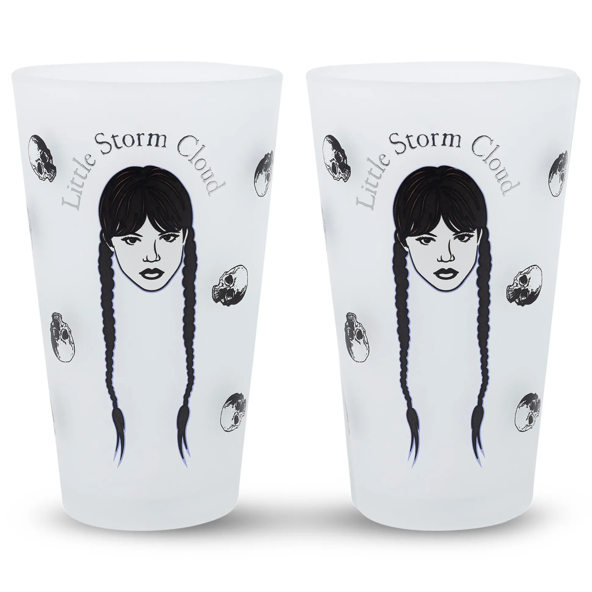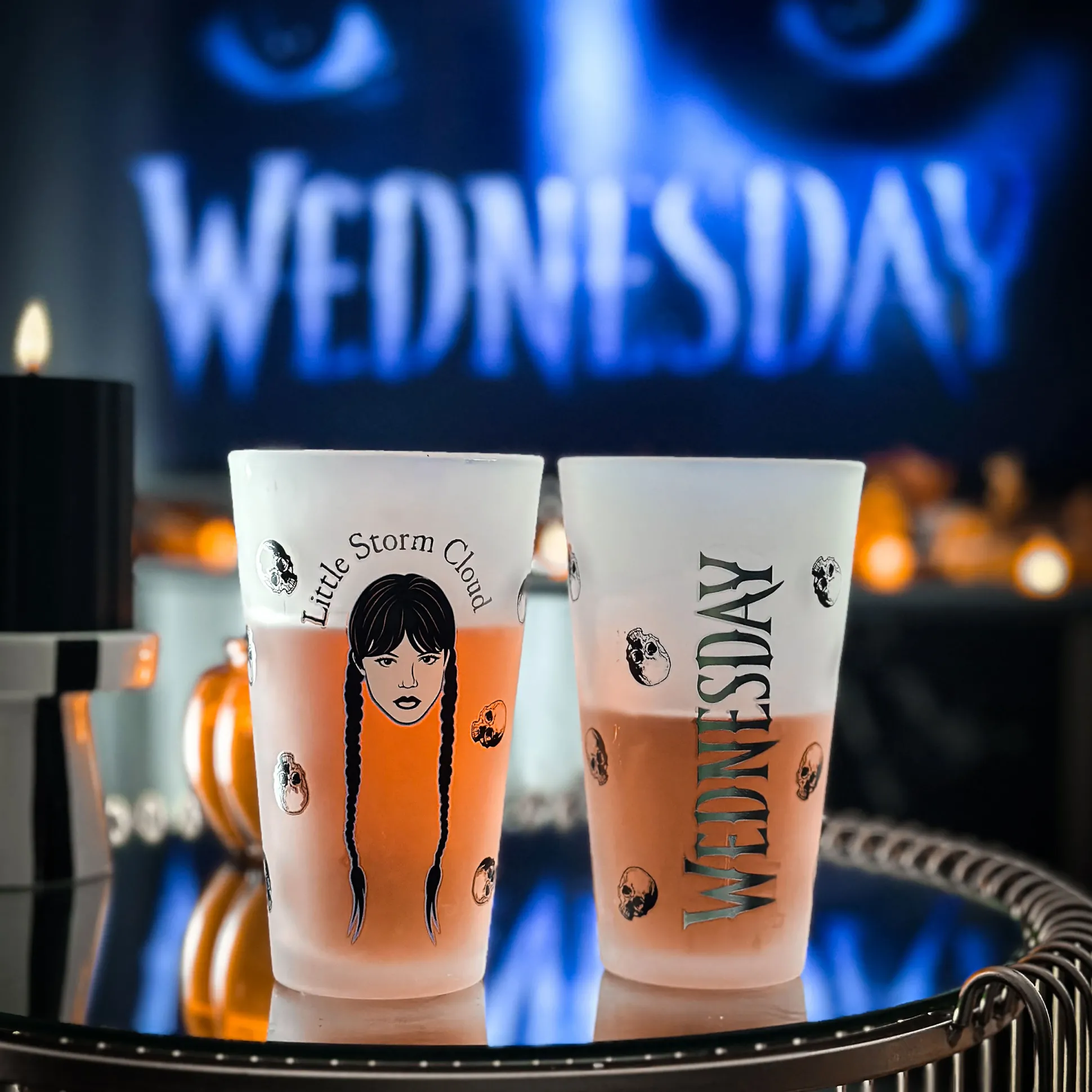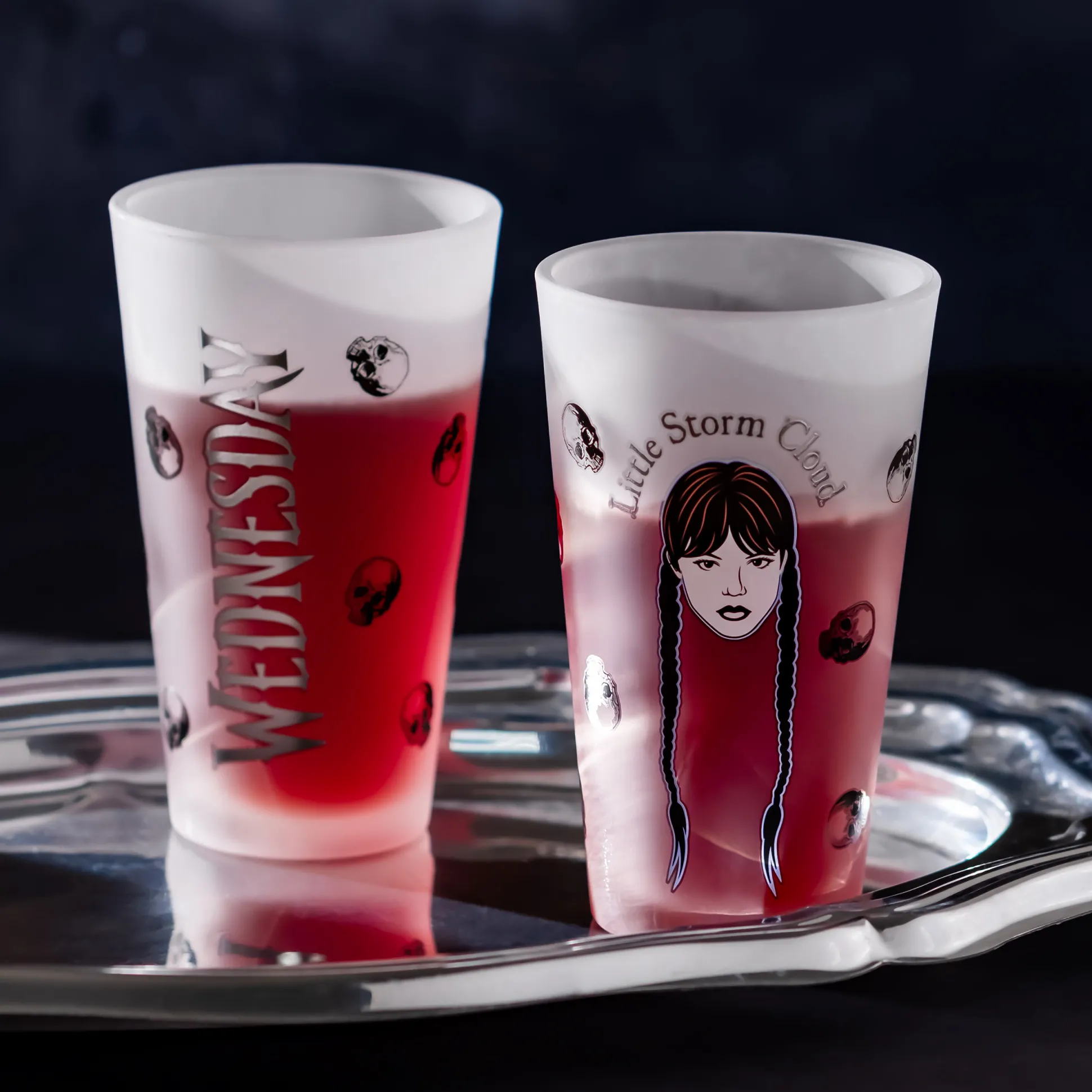 Onweer in de lucht? Schenk iets in met deze officieel gelicentieerde Wednesday-glazenset. Twee matte glazen brengen de deadpan-stijl van Wednesday Addams naar je drankjes, met de opdruk “Little Storm Cloud”. Elk glas heeft een inhoud van 480 ml en is 15 cm hoog — perfect voor ijskoffie zo zwart als haar ziel of een sombere limonade. Alleen met de hand afwassen; vaatwasser en magnetron zijn hier ongeveer even welkom als een glimlach op Nevermore. Geef je plank een tikje meer duisternis — op de beste manier.