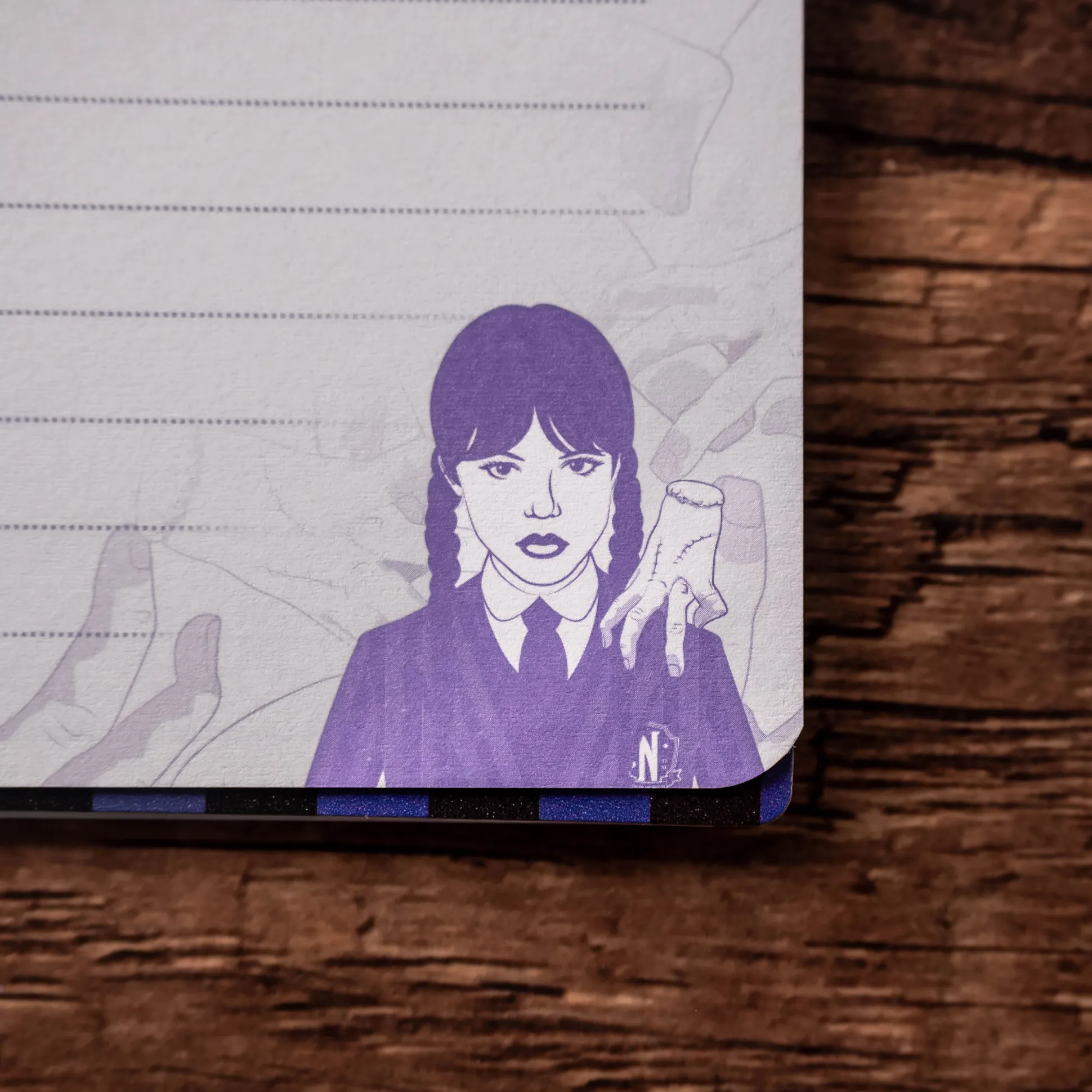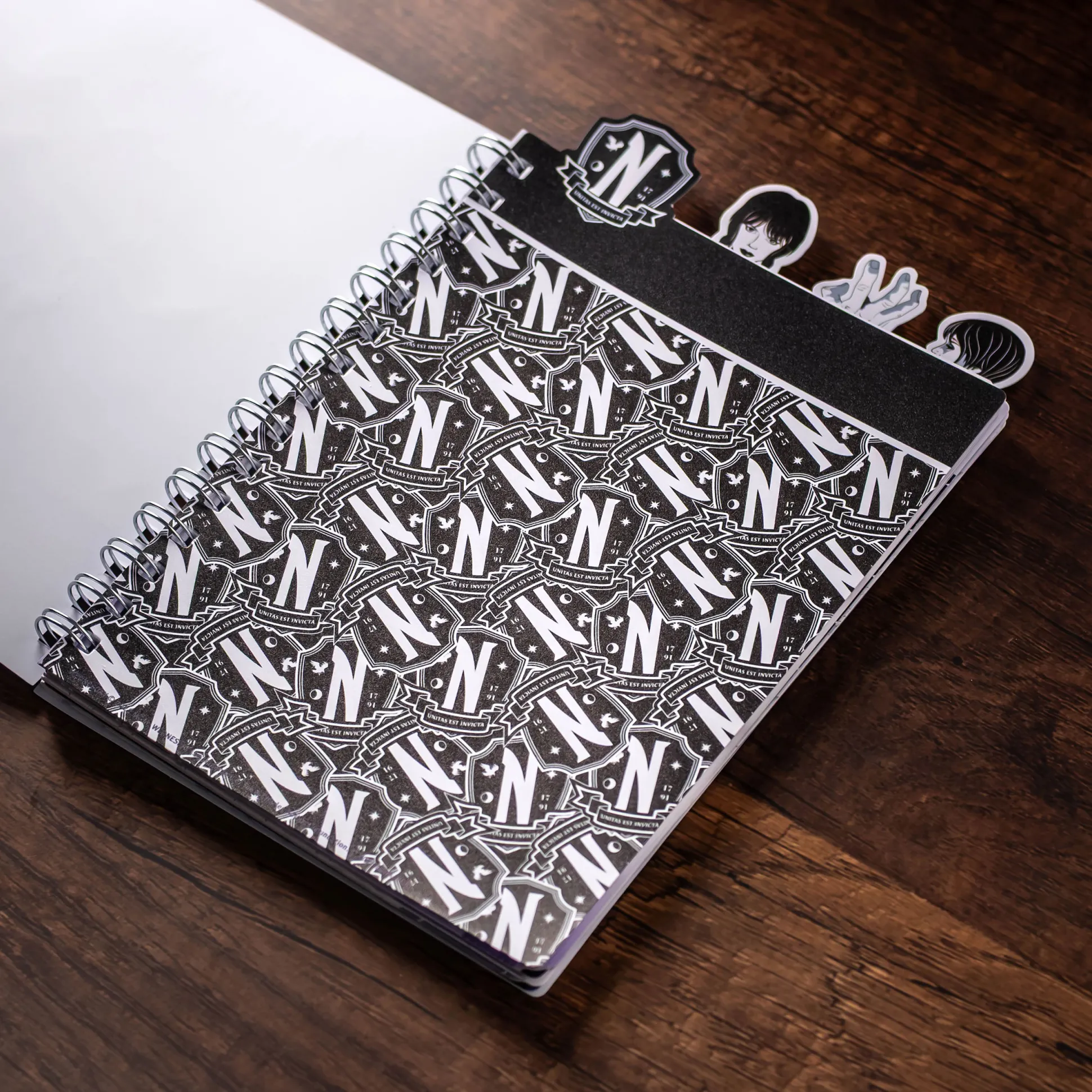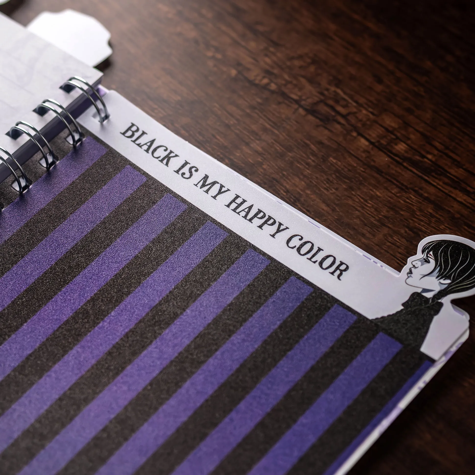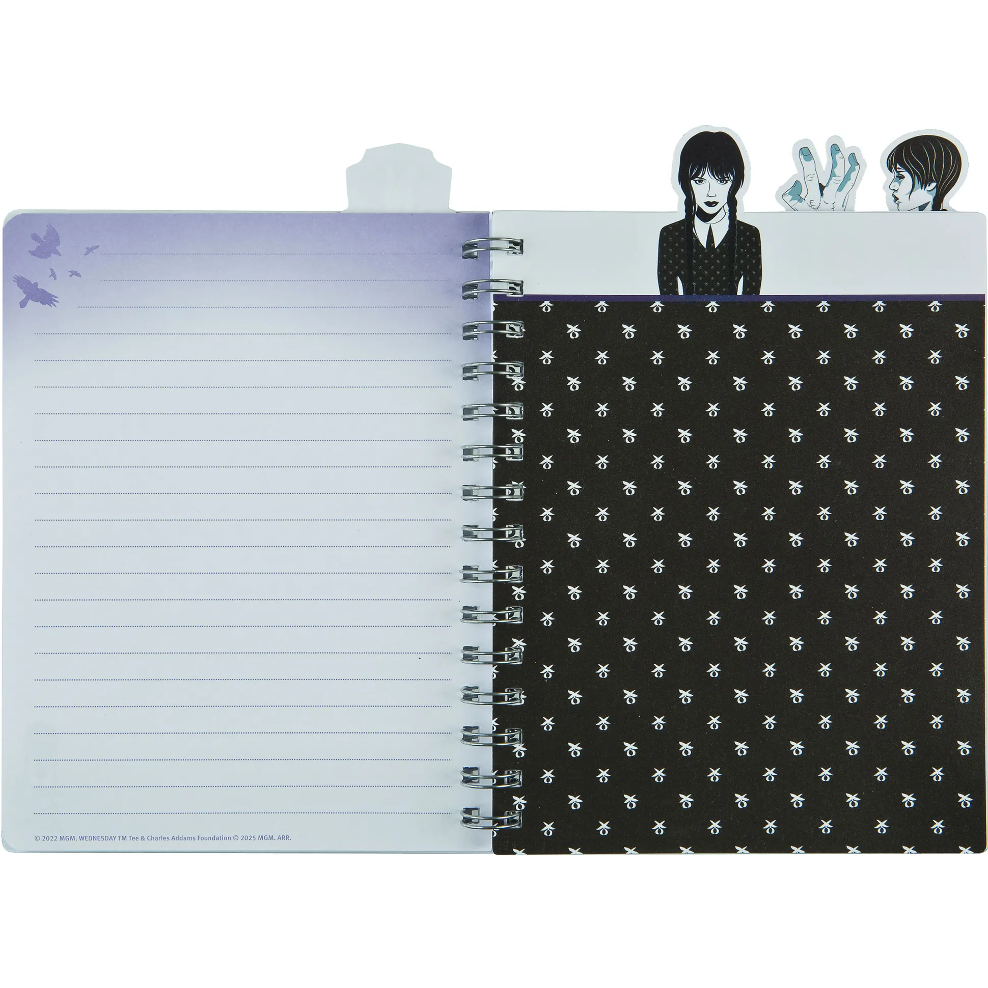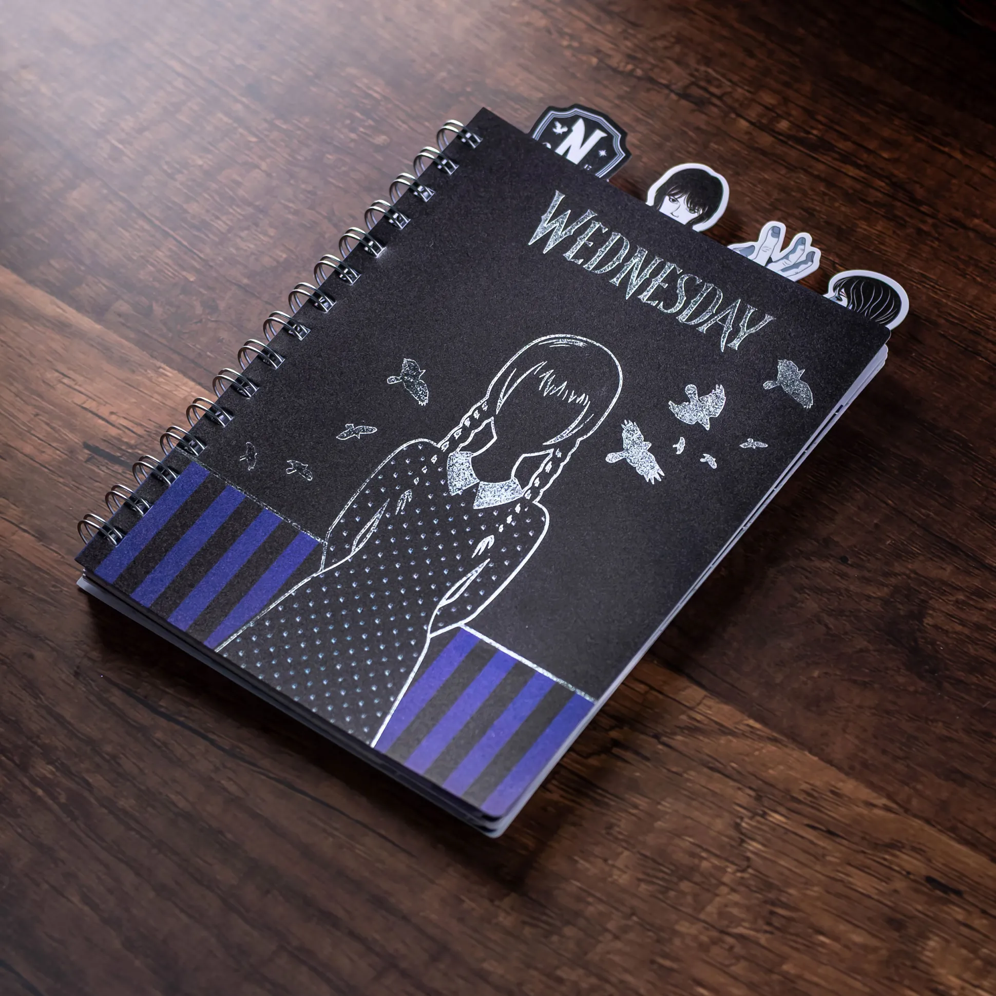 Voor duistere plannen, briljante ideeën en sarcastische to-do-lists: dit officieel gelicentieerde Wednesday spiraalnotitieboek brengt orde in je chaos — met een flinke dosis Wednesday-flair. Omslag in Wednesday Addams-design; binnenin 80 gelinieerde A5-bladen (15 x 1 x 21 cm). Na elke 20 pagina’s een scheidingsblad — in totaal 4 tabbladen — zodat je school, uni, werk of je volgende cello-oefensessie netjes kunt scheiden. De pagina’s hebben verschillende kleuren en de spiraal houdt alles keurig bij elkaar (nou ja, zo netjes als Wednesday toelaat). Het perfecte cadeau voor fans — of voor jezelf, als je notities net zo droog mogen zijn als je humor.