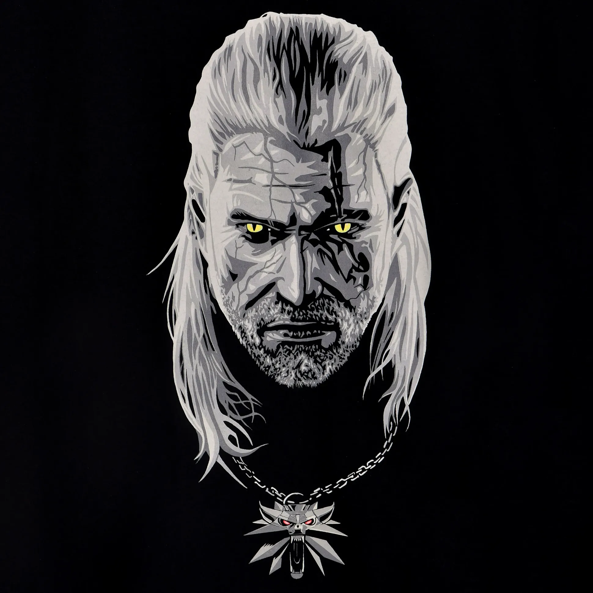 - Geralts ogen en wolf medaillon gloeien in het donker