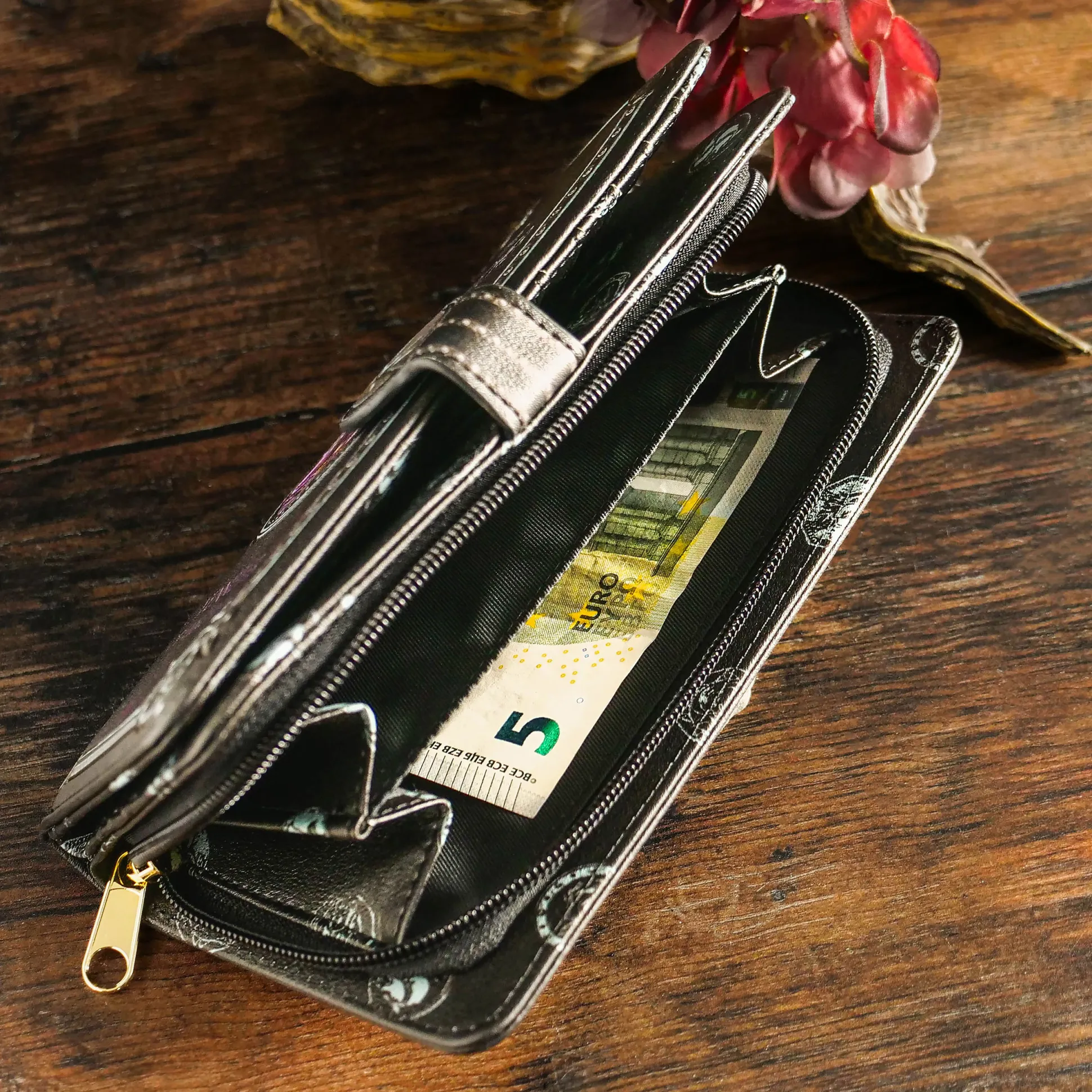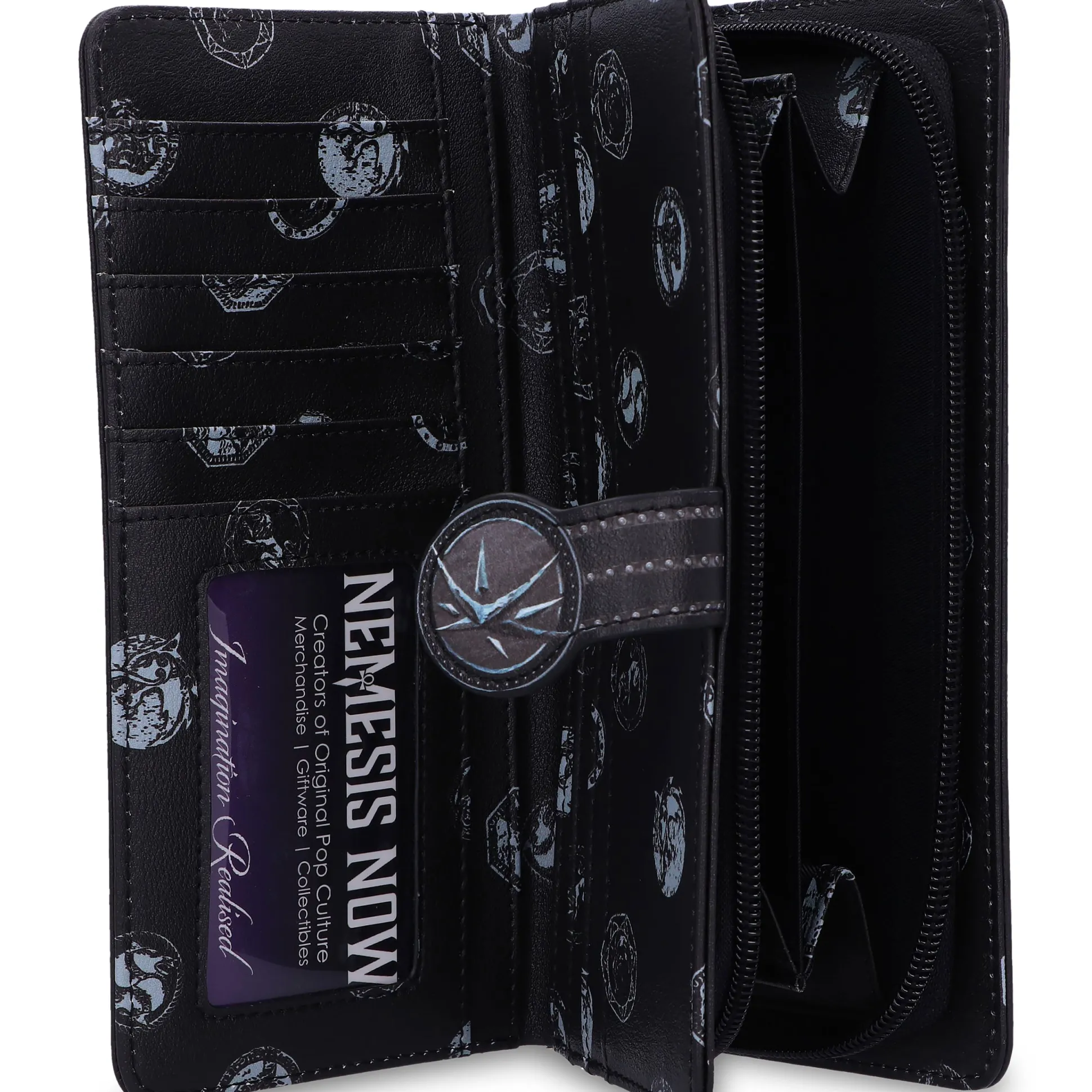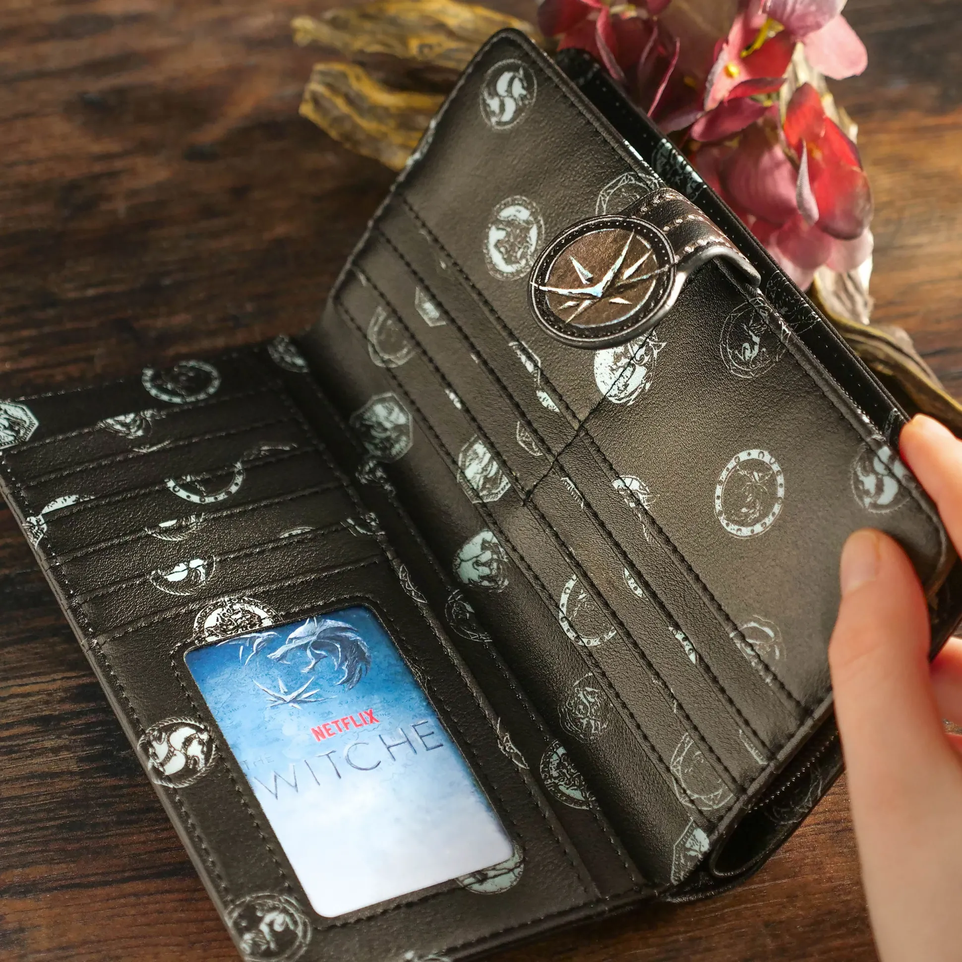 Beheers chaos op de Yennefer-manier. Officieel gelicentieerde The Witcher portemonnee in Yennefer van Vengerberg-design met The Witcher-symbolen; brengt orde in munten, kaarten en bonnetjes — zonder portaalmagie. Magneetsluiting: snel open, veilig dicht. Binnenin: 11 kaartsleuven, 3 vakken voor briefgeld, één groot muntvak met rits en een fotovak (voor Geralt, je favoriete Teken of je kat). Afmetingen 18,5 x 9,5 x 3 cm — genoeg ruimte voor Novigrad-buit. Strakke look, stevige kwaliteit en orde die bijna magisch aanvoelt. Van markt tot koninklijk banket — draag een stukje van het Continent en laat zien aan welke machtige dame je zijde kiest.