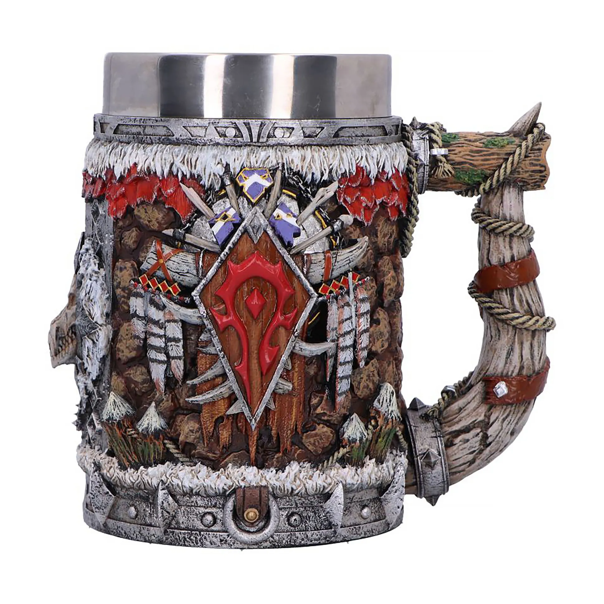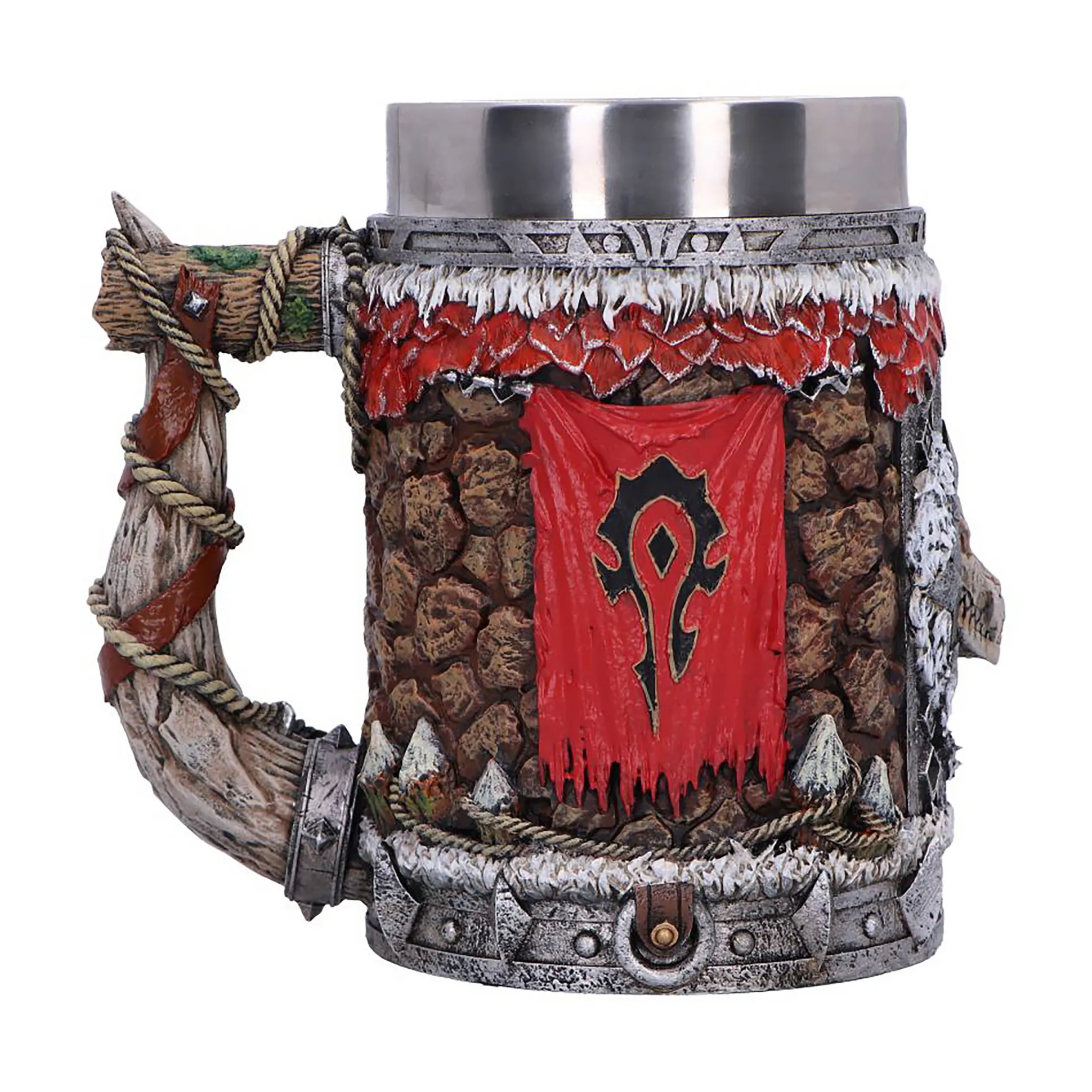 De beker is rijk aan details, zorgvuldig met de hand beschilderd en 15 cm hoog, precies groot genoeg om indruk te maken op je bureau, in de kast of tijdens raid-avonden. Binnenin zit een uitneembare inzet van roestvrij staal met een inhoud van 600 ml, zodat je genoeg mana, woede of koffie bij de hand hebt zonder voortdurend bij te schenken.