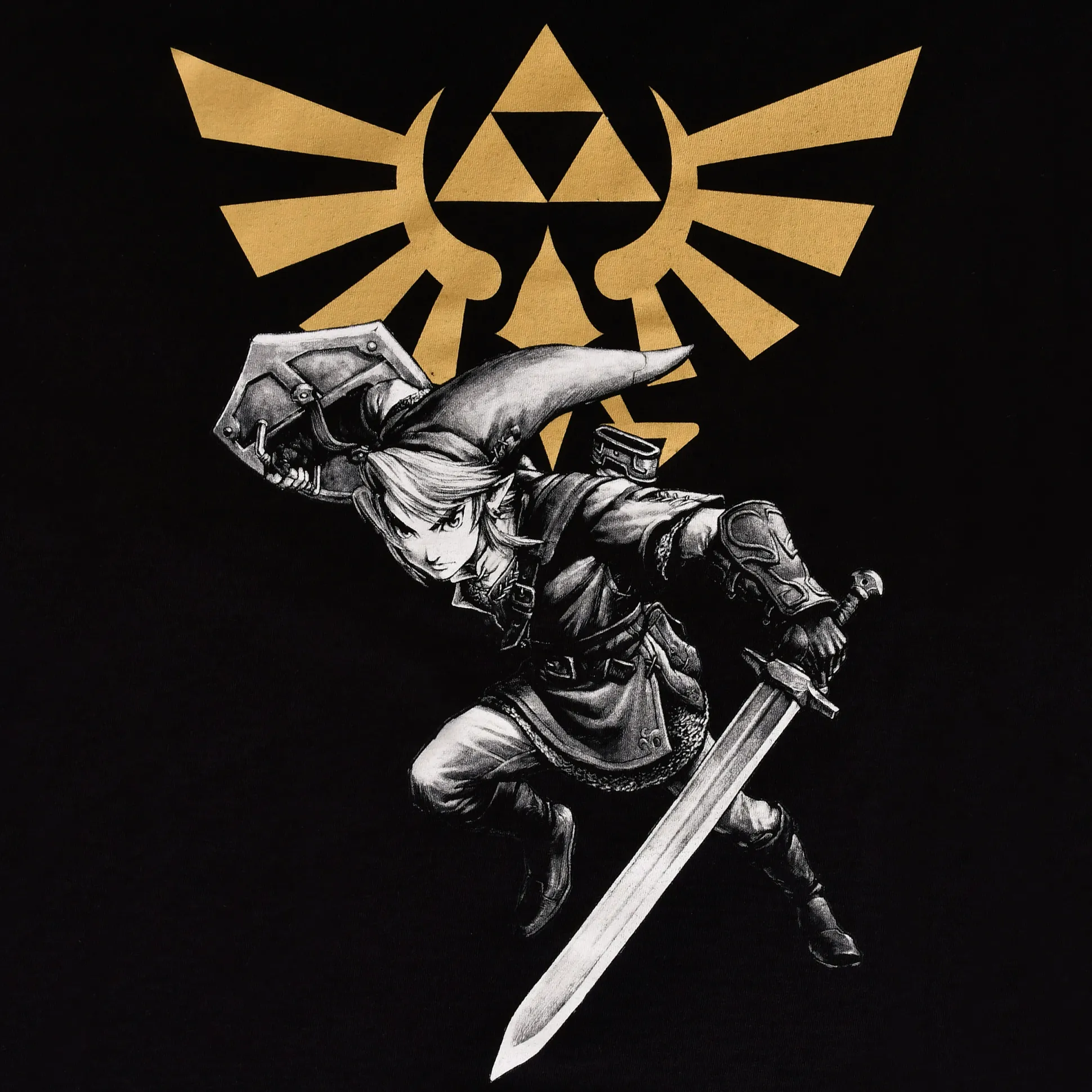 Rechte pasvorm, ronde hals en klassiek zwart maken ’m je dagelijkse quest‑buddy — van de bank tot de conventie. Makkelijk te combineren, held‑klaar, direct draagbaar. Op naar Hyrule!