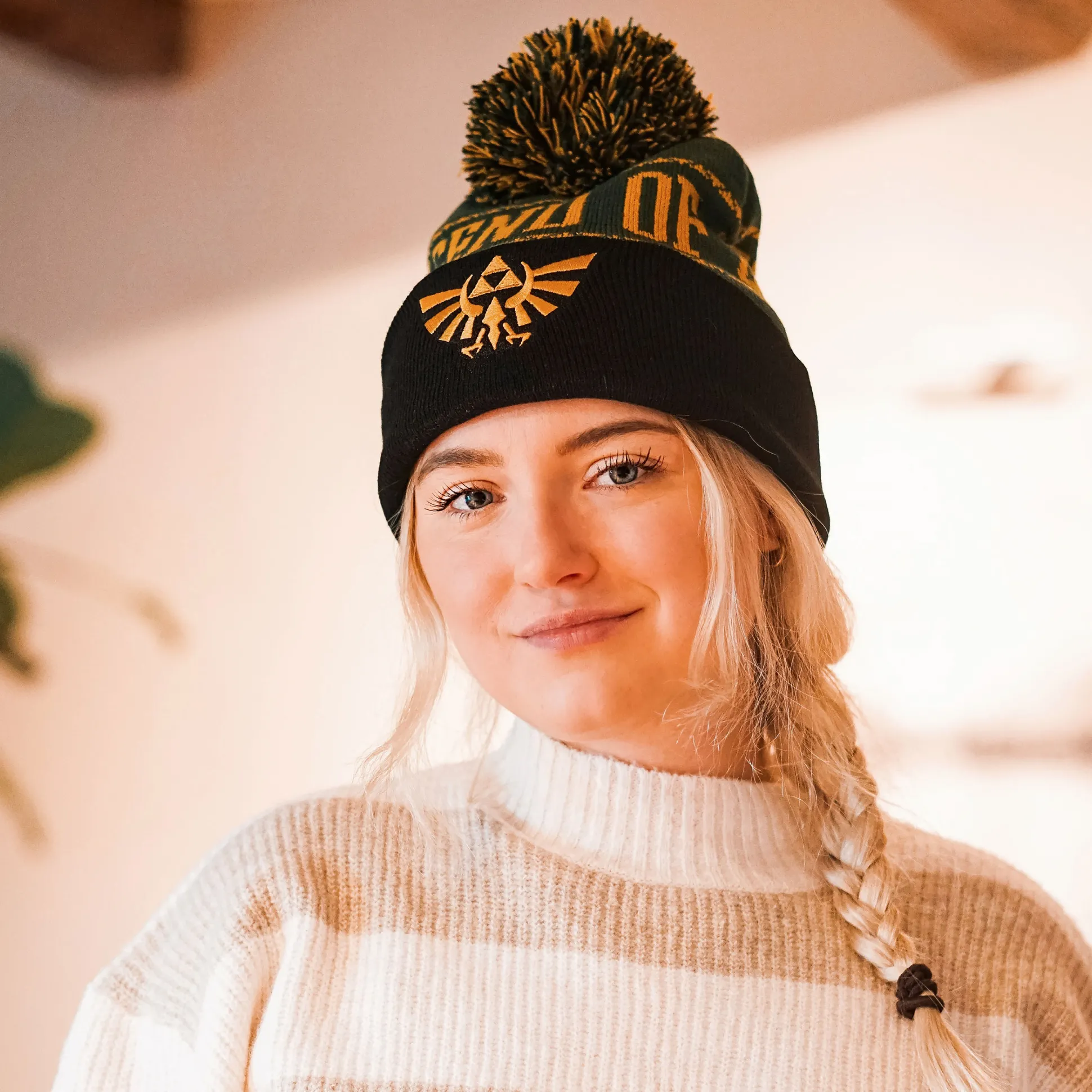 Klaar om Hyrule te redden – of in ieder geval de koude winterdagen te overleven? Met de officieel gelicentieerde Zelda-muts met pompon ben je helemaal voorbereid! Deze groen-zwarte muts is niet alleen een blikvanger voor fans van de legendarische videogameserie, maar ook jouw trouwe metgezel voor ijskoude avonturen. De omgeslagen rand met geborduurde tekst laat iedereen zien dat jij een echte held bent – of dat je dat zou kunnen zijn, als je niet net op de bank ligt te chillen. Dankzij het zachte, dubbelgelaagde materiaal houdt deze muts je warm, of je nu door besneeuwde bossen dwaalt of gewoon op weg bent naar het dichtstbijzijnde café. En die pompon? Dat is gewoon de kers op de taart! Haal deze muts in huis en laat de wereld zien dat je klaar bent voor elk avontuur – of in ieder geval voor het weer.