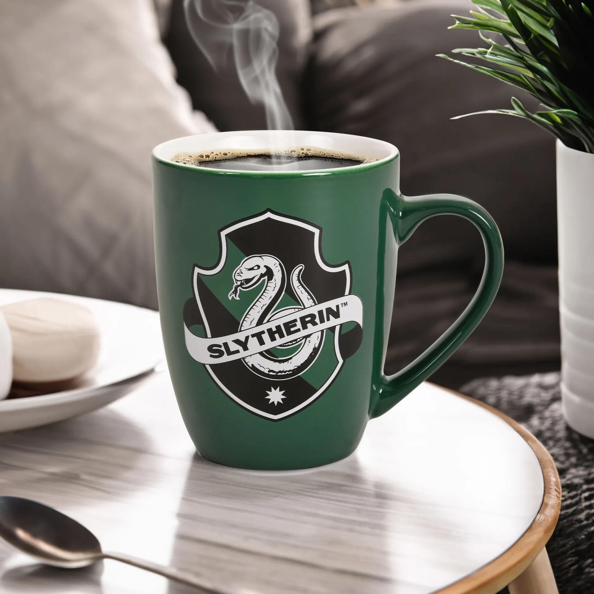 Ben je klaar om je trouw te tonen aan het trotste van alle Zweinstein huizen? Dan is deze officieel gelicenseerde Harry Potter mok met het Zwadderich wapen precies wat je nodig hebt! Met een inhoud van 300 ml biedt het genoeg koffie, thee of toverdrank om je de dag door te helpen. Het is vaatwasmachinebestendig, waardoor het perfect is voor dagelijks gebruik. De mok is in een gedurfde Zwadderich groen, terwijl het interieur schittert in briljant wit – net als de harten van de meest ambitieuze tovenaars en heksen. Met deze mok in je hand kun je elke ochtend bij het ontbijt je Zwadderich trots tonen terwijl je geniet van je favoriete drankjes.